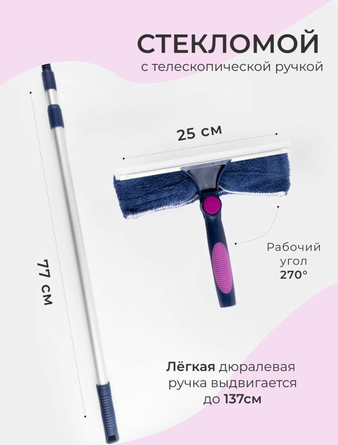 Щетка для мытья окон, стекломойка с телескопической длиной ручкой, окномойка с резиновым скребком и губкой. Швабра для окон Окномойка интересное: