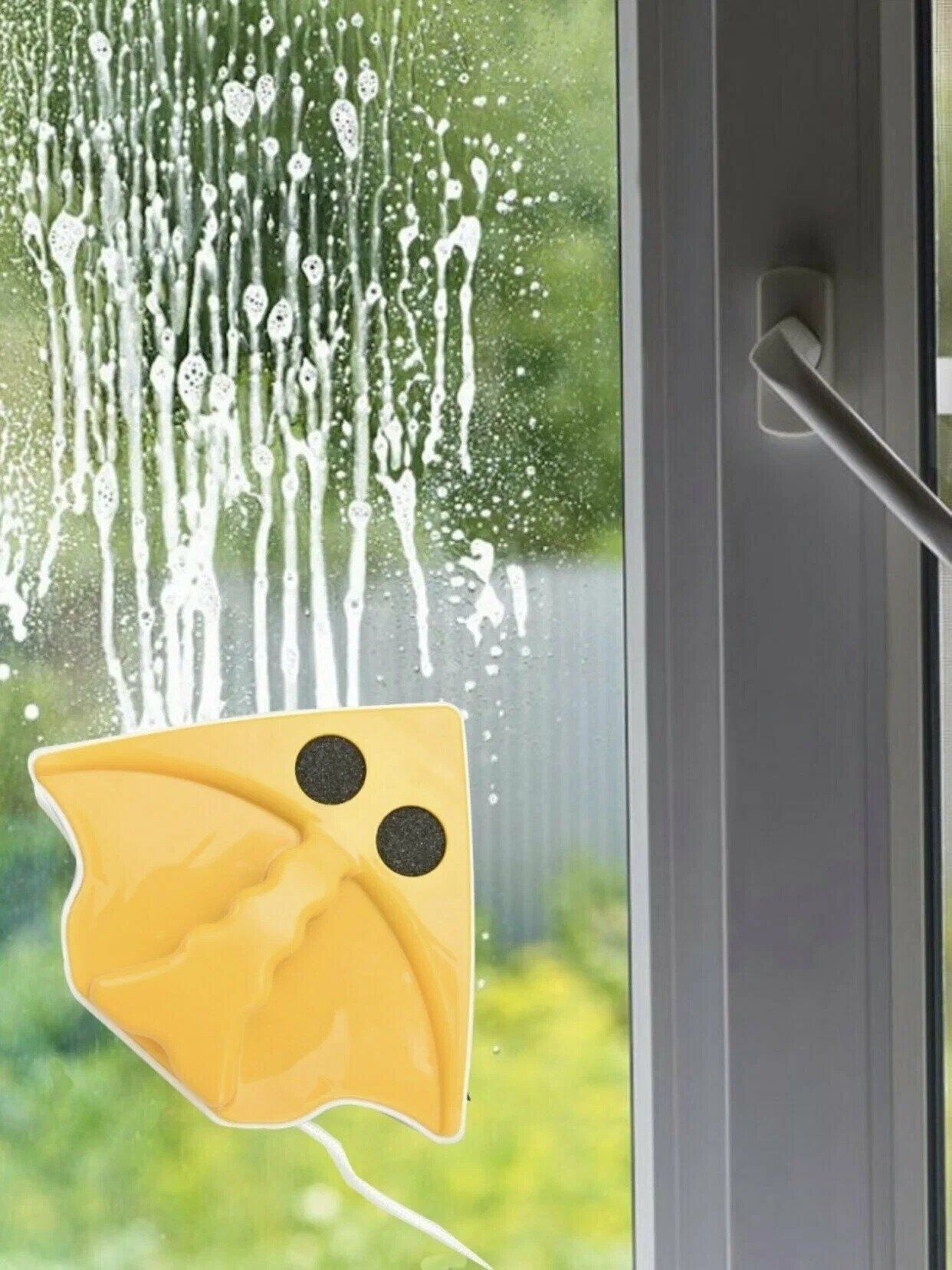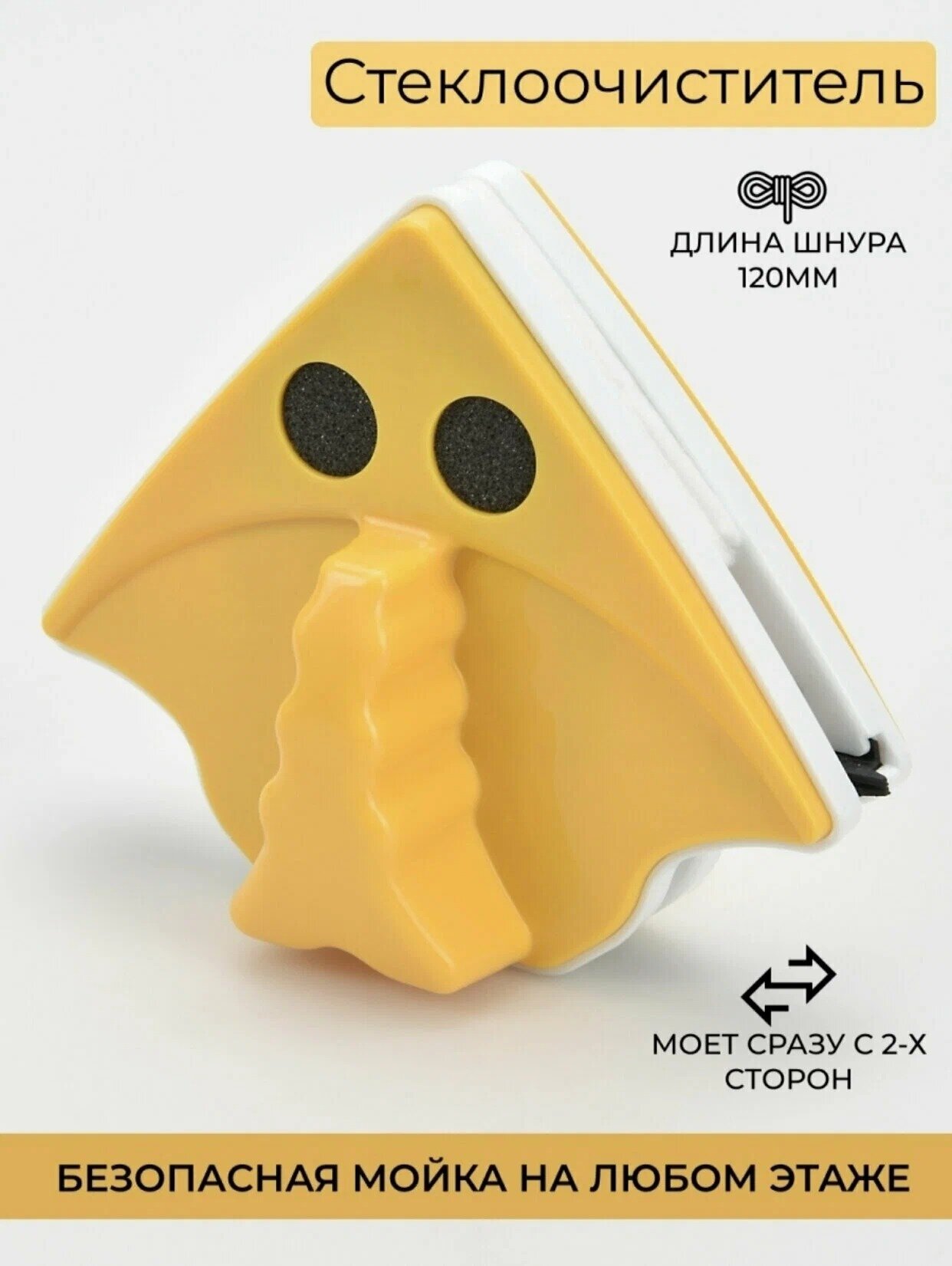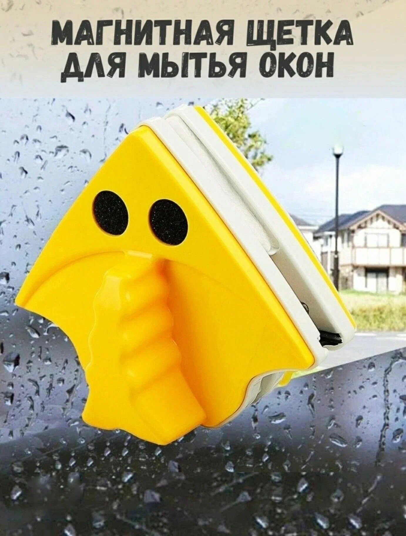 Двухсторонняя магнитная щетка для стекл и окон / Безопасная моющая щетка для окон / Удобная щетка желтая интересное:
