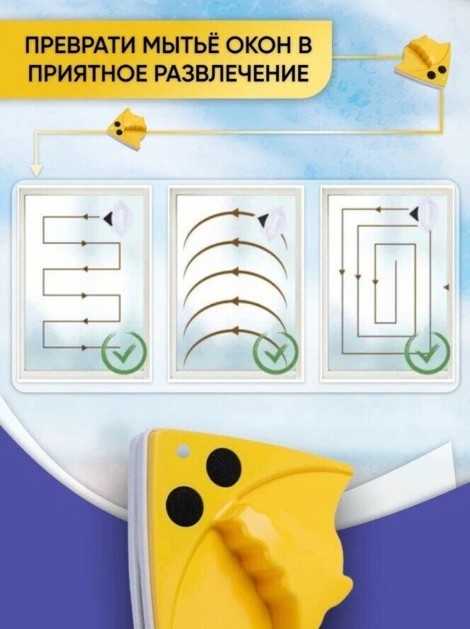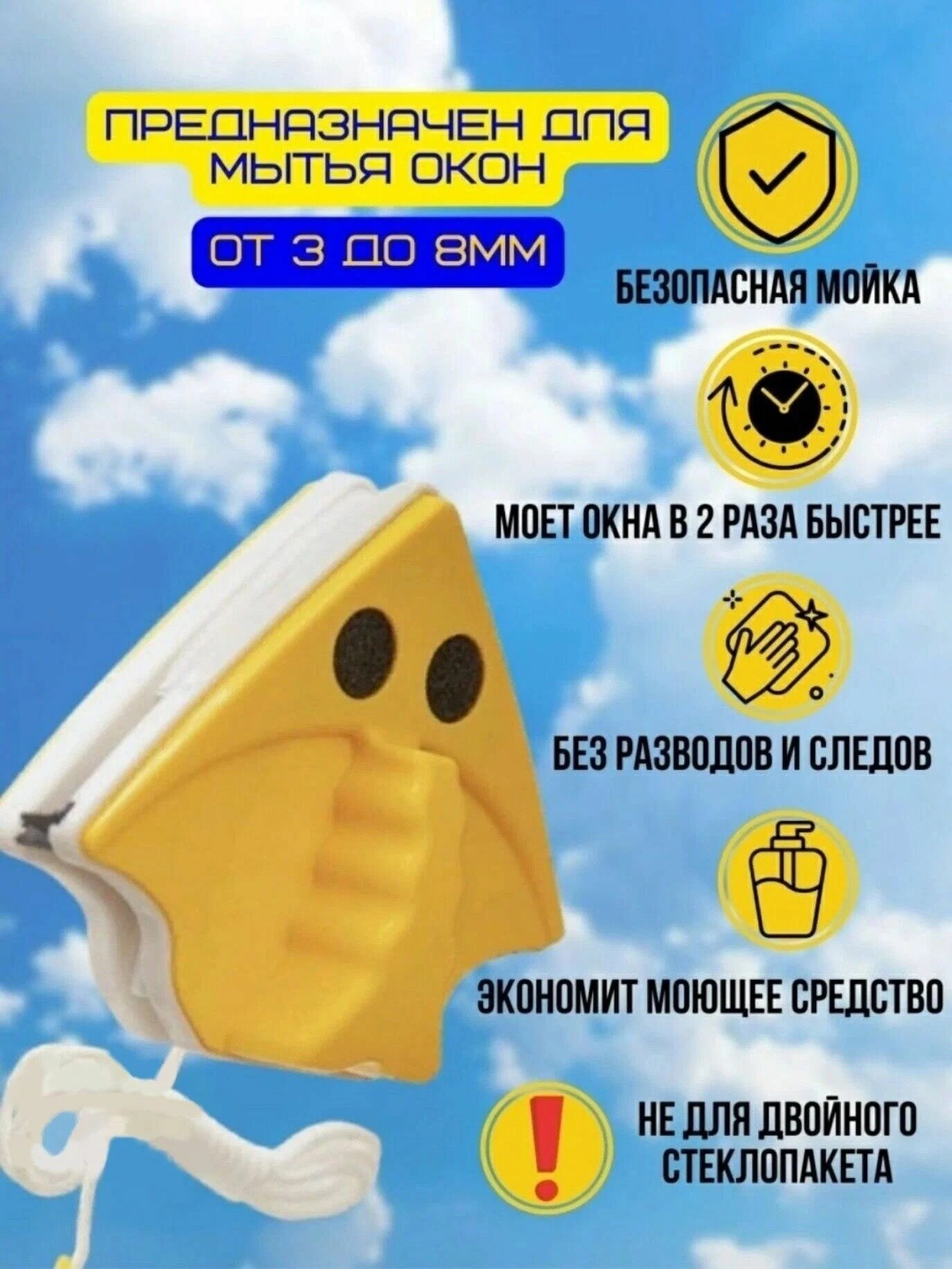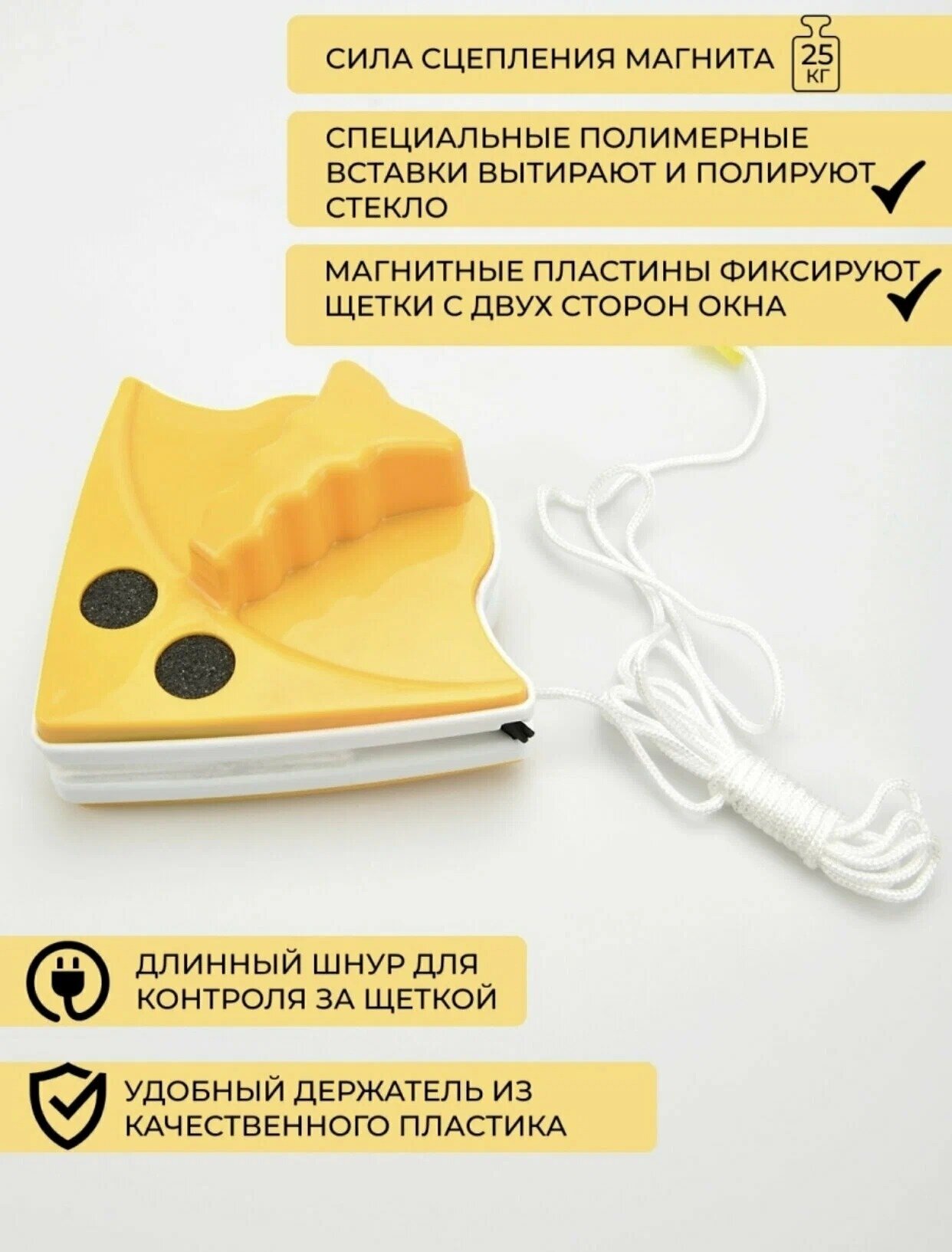 Двухсторонняя магнитная щетка для стекл и окон / Безопасная моющая щетка для окон / Удобная щетка желтая интересное: