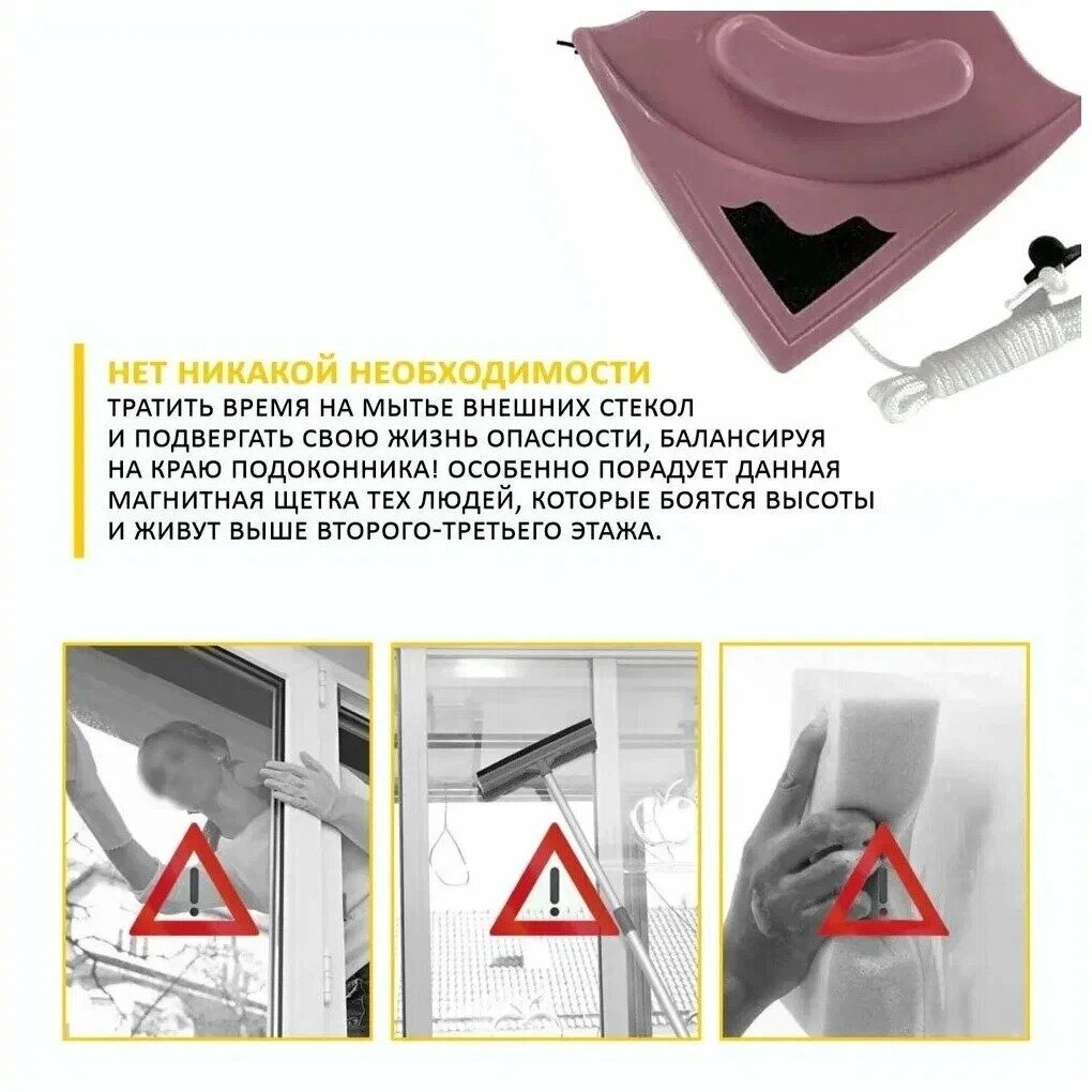 Двухсторонняя магнитная щетка для стекл и окон / Безопасная моющая щетка для окон / Удобная щетка розовая интересное:
