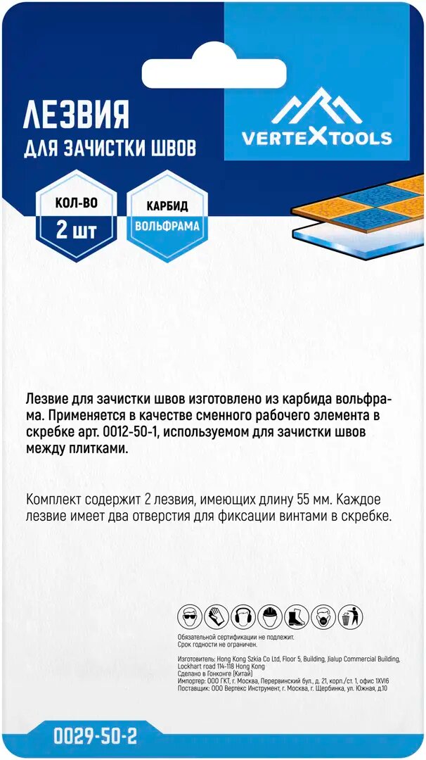 | Комплектация | Лезвие для скребка Vertextools 0029-50-2, 2 шт. |