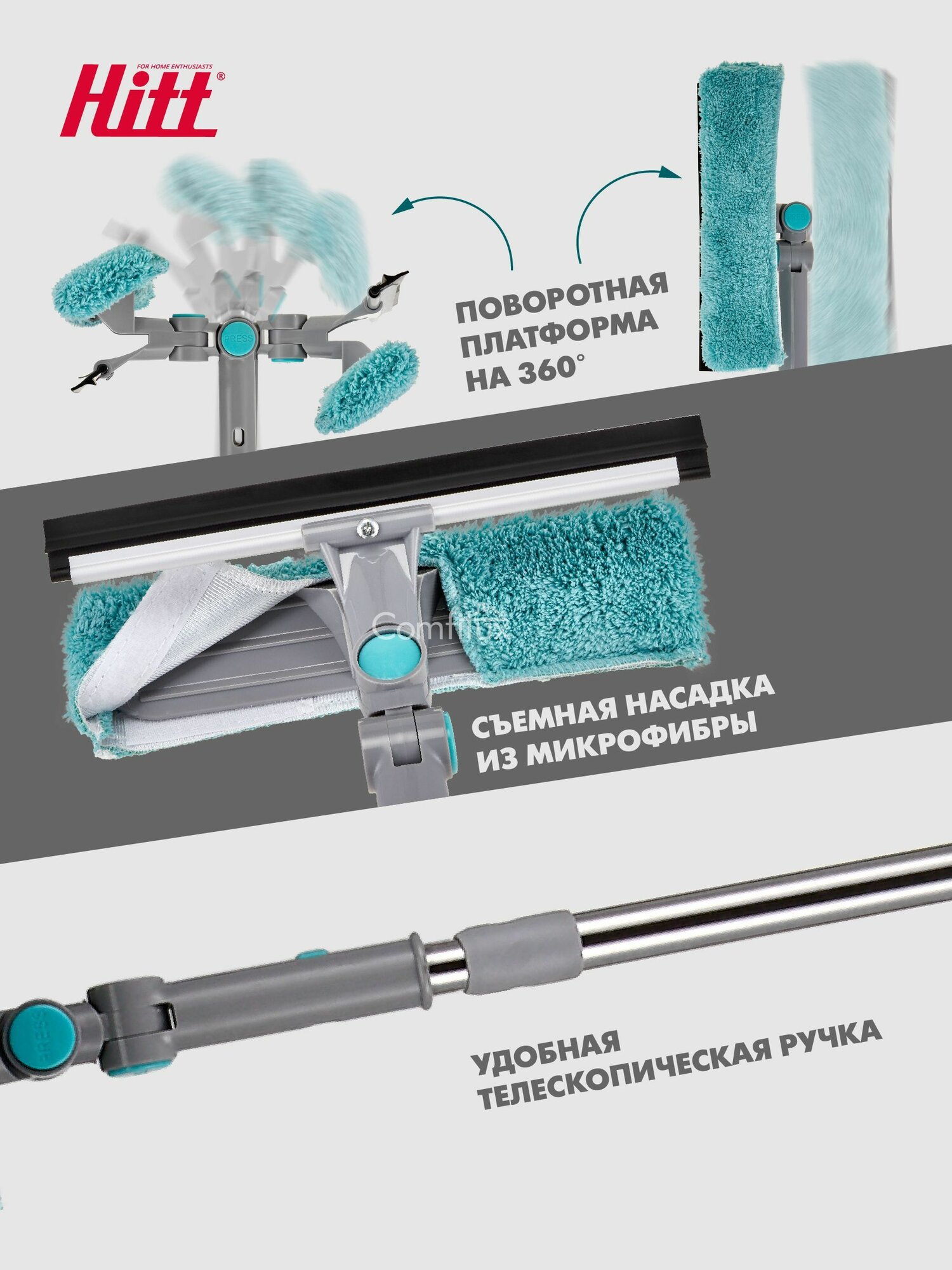 Окномойка Hitt Supreme Comfort 2 в 1 с телескопической ручкой 120см/насадка из микрофибры (H8303)