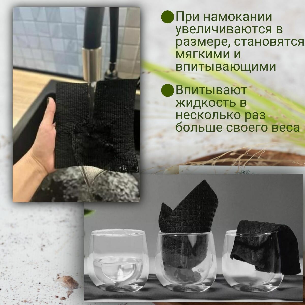 салфетки для уборки, губчатые из целлюлозы, черные, размер 17.5*16.5, 3 шт. Состав: целлюлоза 70%, хлопок 30% интересное: