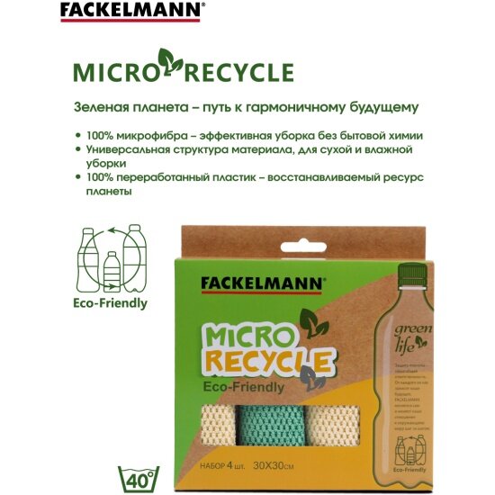 Салфетки универсальные из микрофибры FACKELMANN ECO 30*30 см, 4шт для кухни, тряпка для ванной, эко микрофибра интересное: