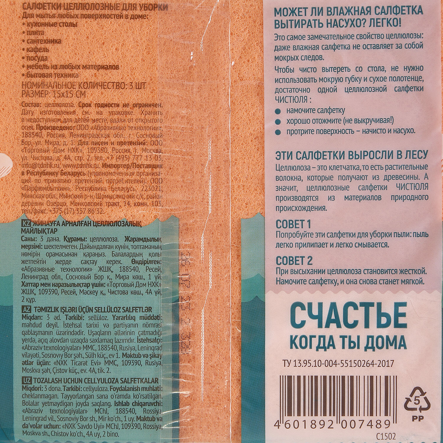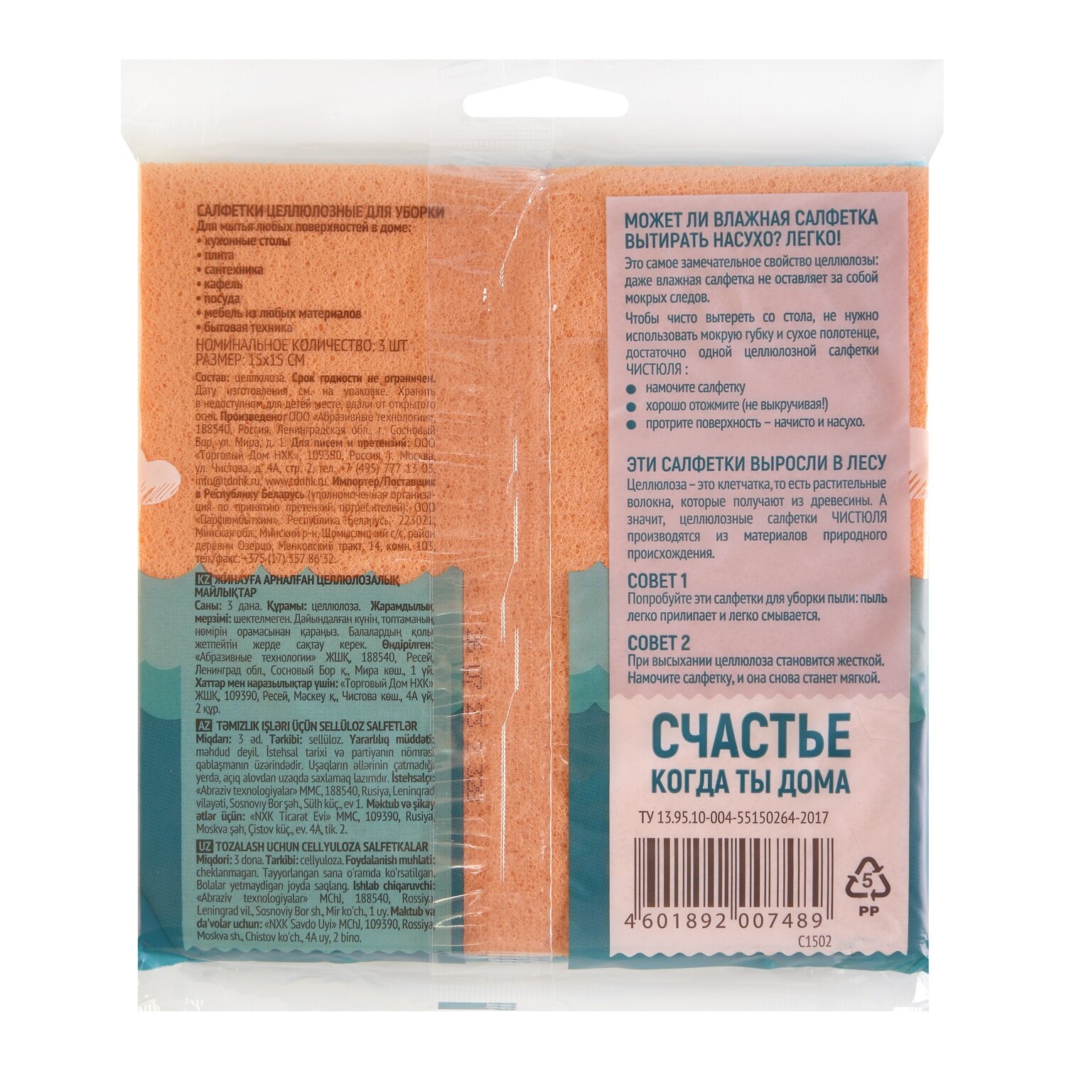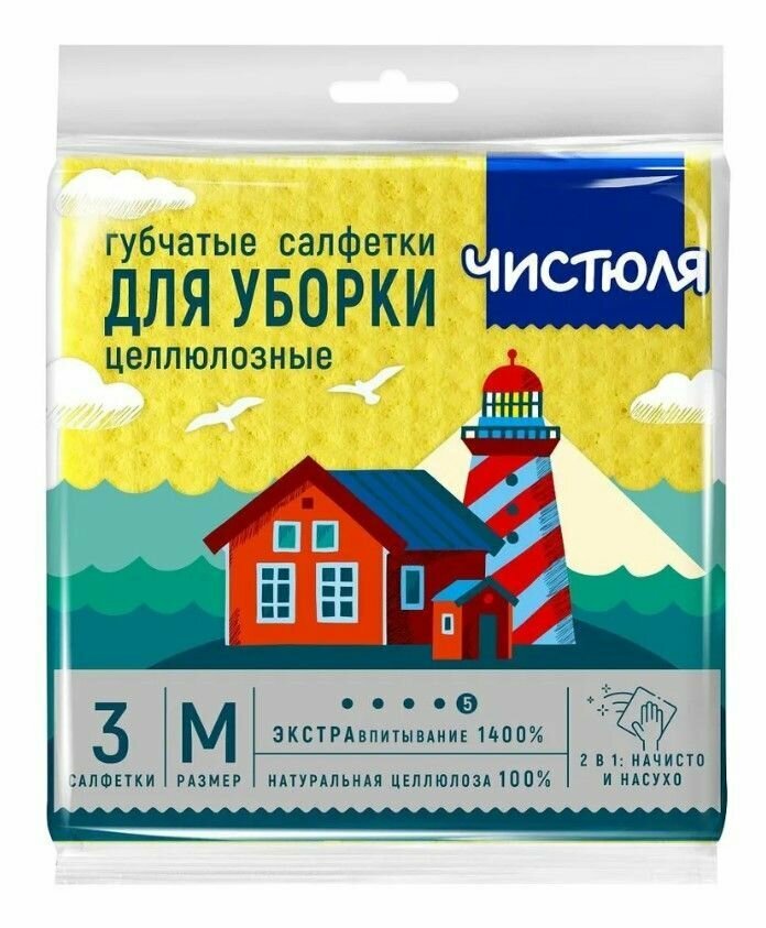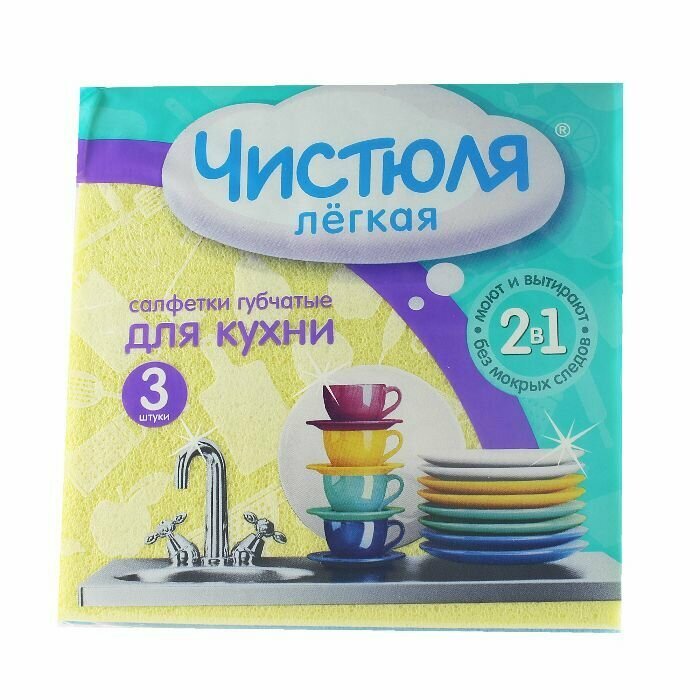 Салфетки губчатые Чистюля лёгкая целлюлозные, голубой/оранжевый/желтый, 3 шт. интересное: