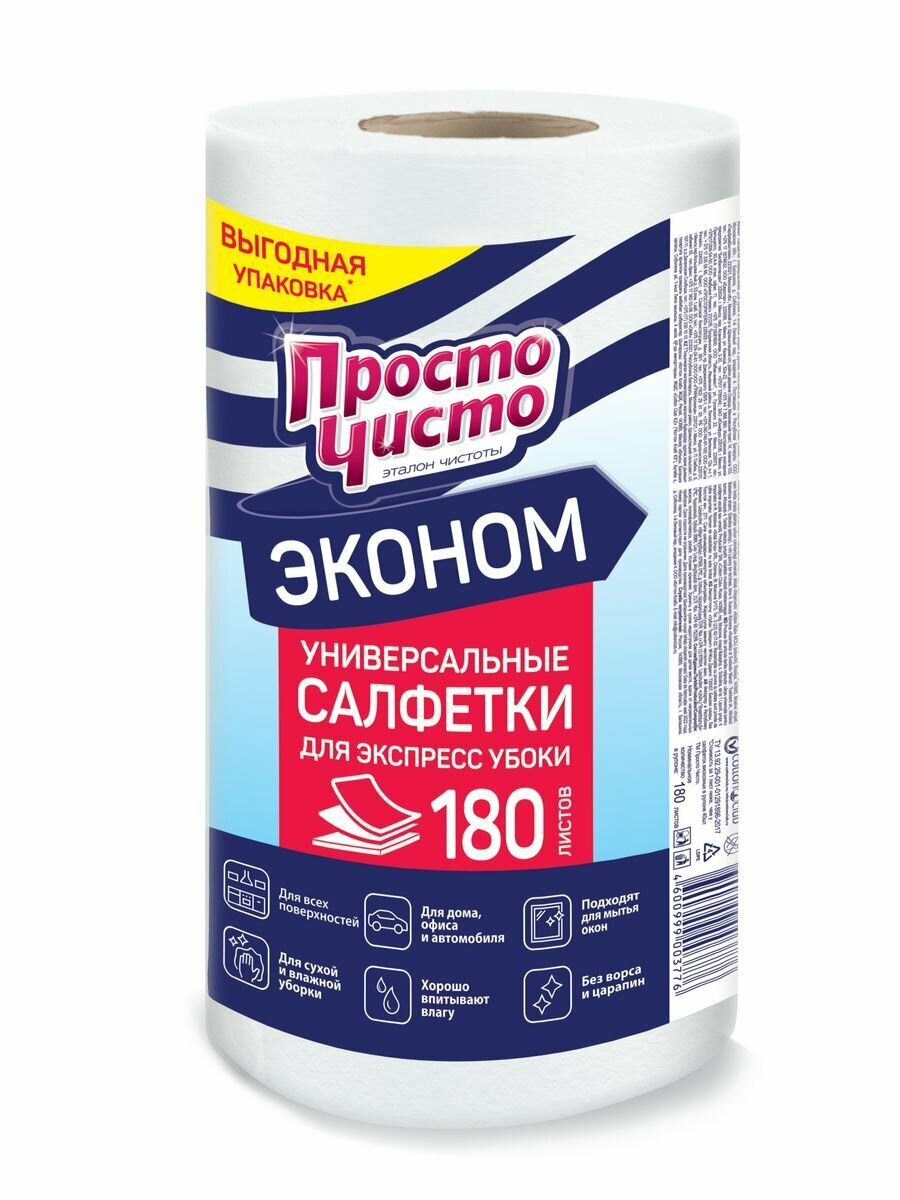 Салфетки для уборки Просто Чисто универсальные в рулоне для кухни и дома 180 шт