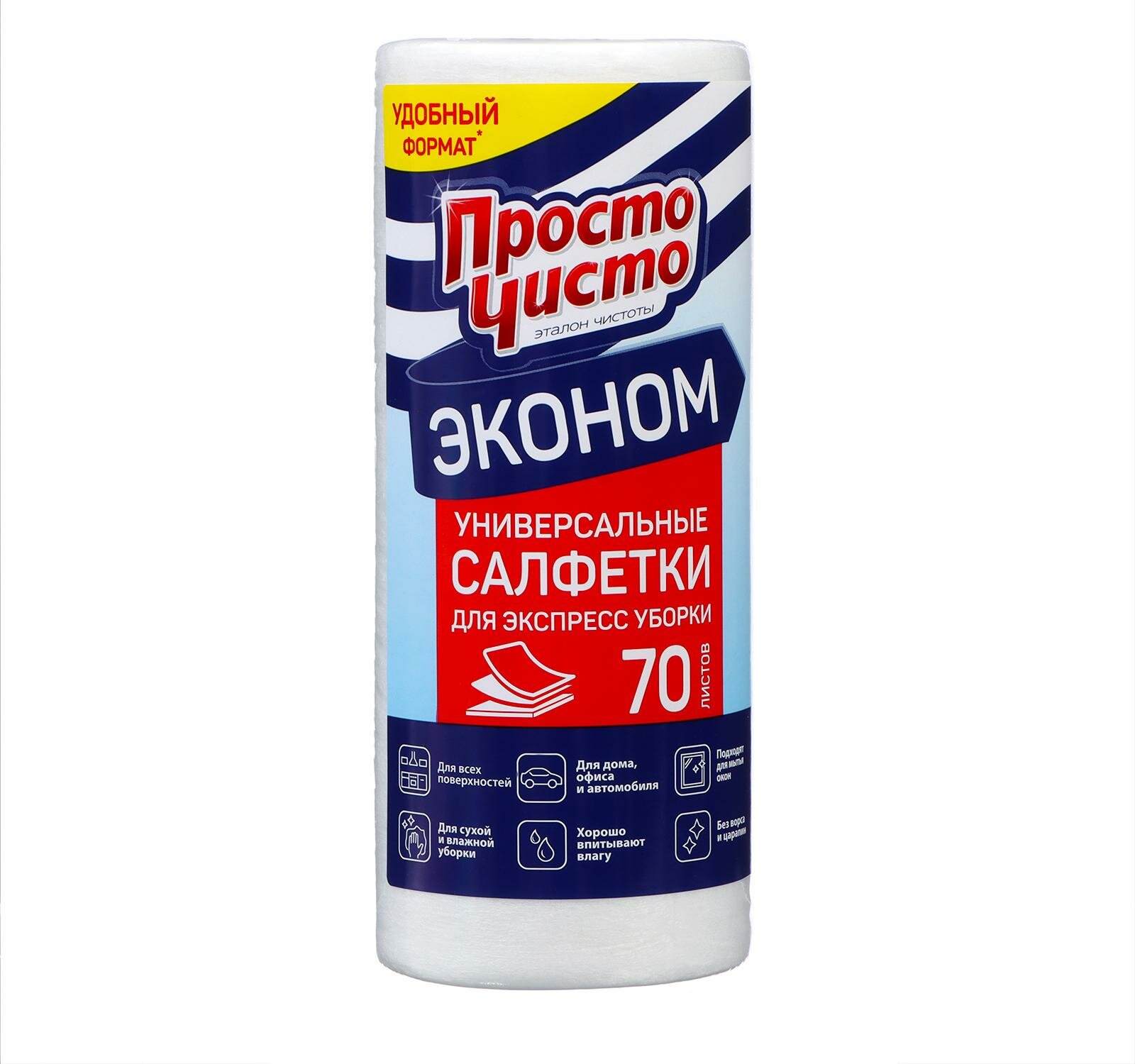 Салфетки вискозные Просто чисто в рулоне, белый, 70 лист., 1 уп.