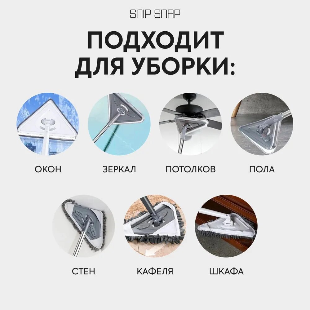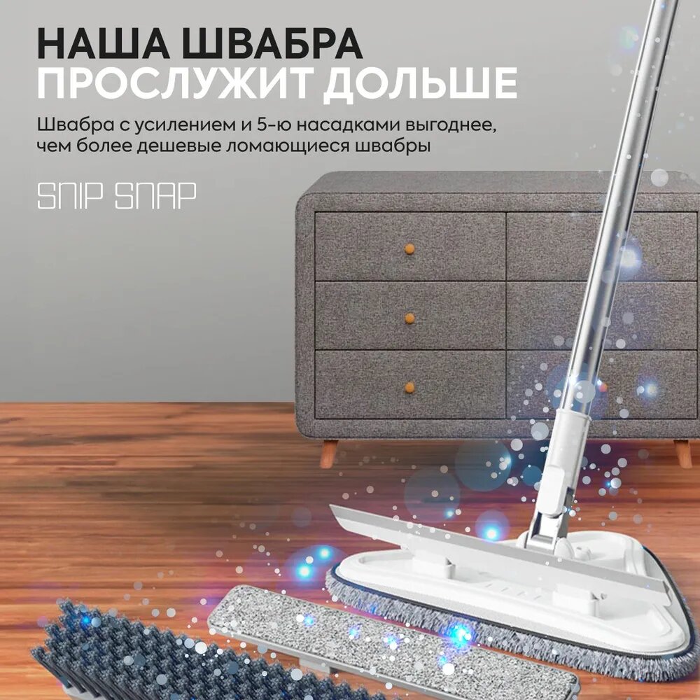 Швабра с пятью насадками для мытья окон зеркал полов и потолков Snip-Snap интересное:
