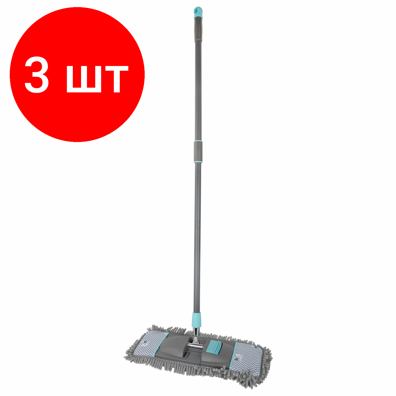 Купить Комплект 3 шт, Швабра с насадкой 42 см, телескопический черенок 75-120 см, ворсистая микрофибра, карманы, LAIMA HOME, 606798, HY0128A