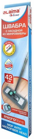 Швабра с насадкой 42 см, телескопический черенок 75-120 см, микрофибра, карманы, LAIMA HOME, 606798