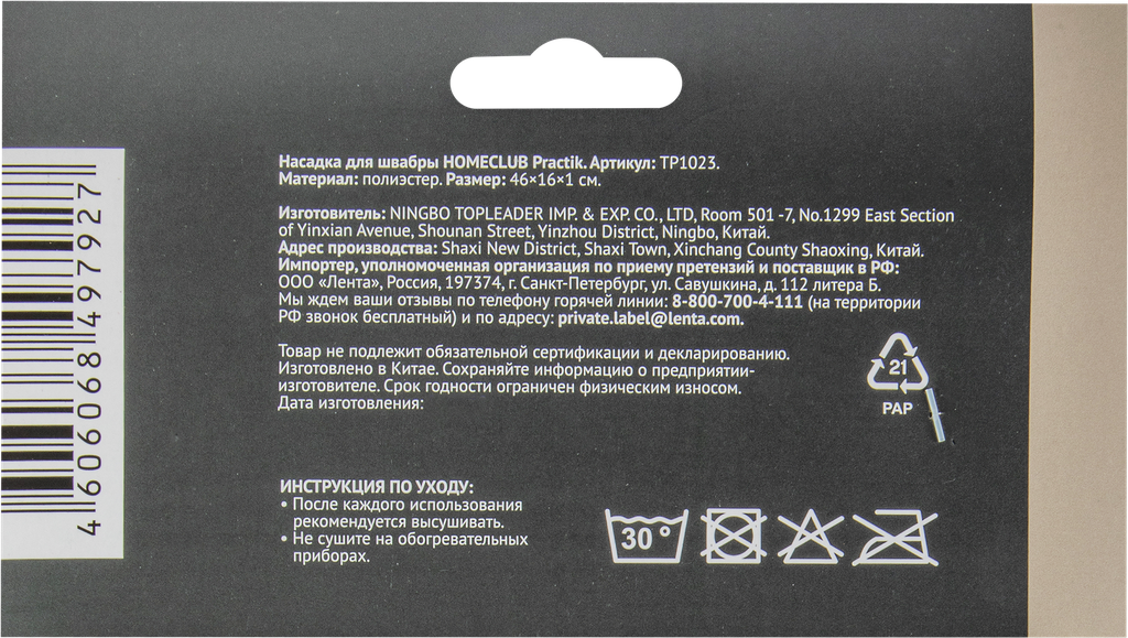 Насадка для швабры HOMECLUB Practik 48x18/46х16см, микрофибра интересное: