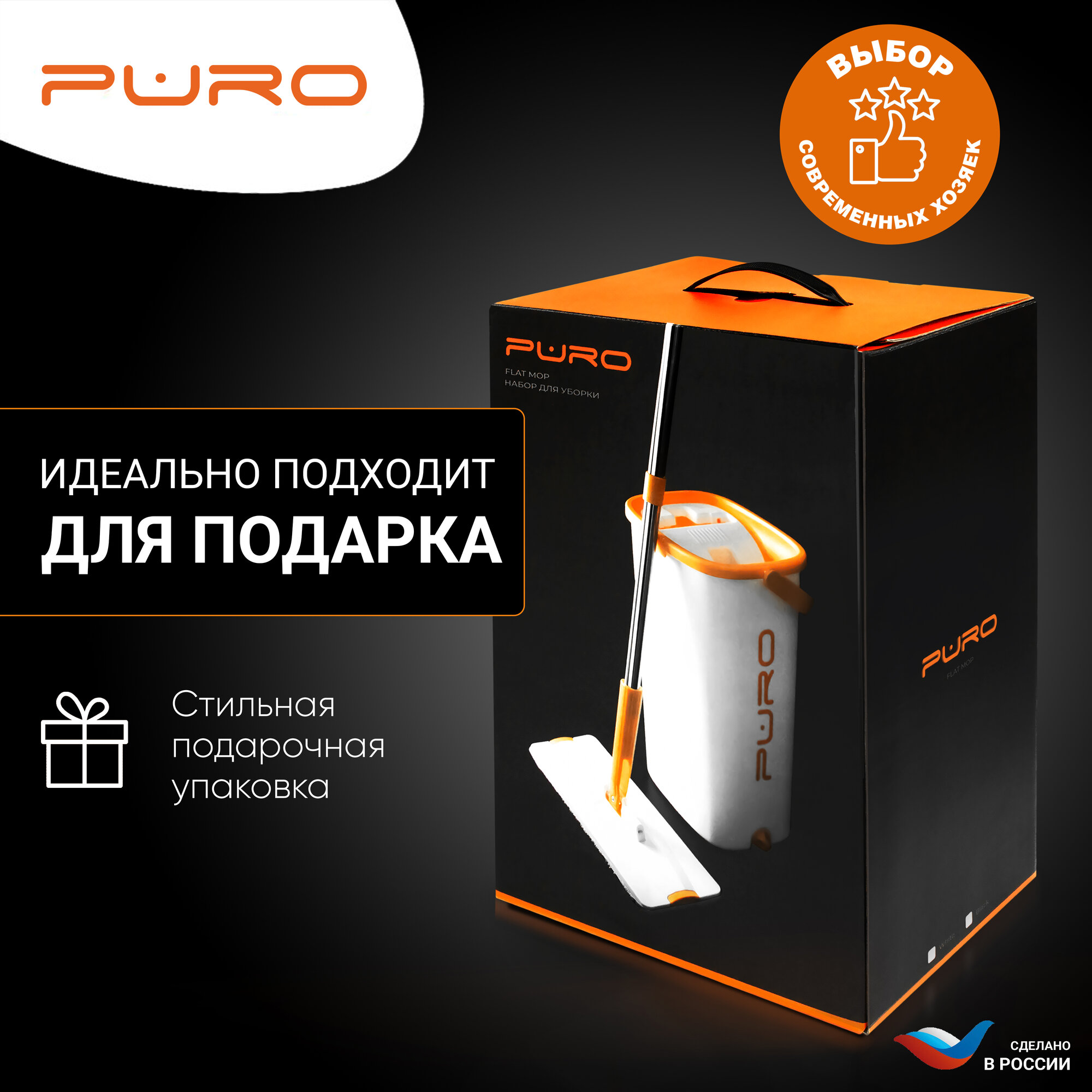 Швабра с отжимом и ведром, комплект для уборки FLAT, белая интересное: