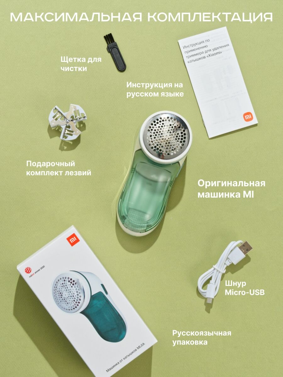 | Комплектация | USB-кабель; Щетка для уборки; машинка для удаления катышков; 1 комплект лезвий |