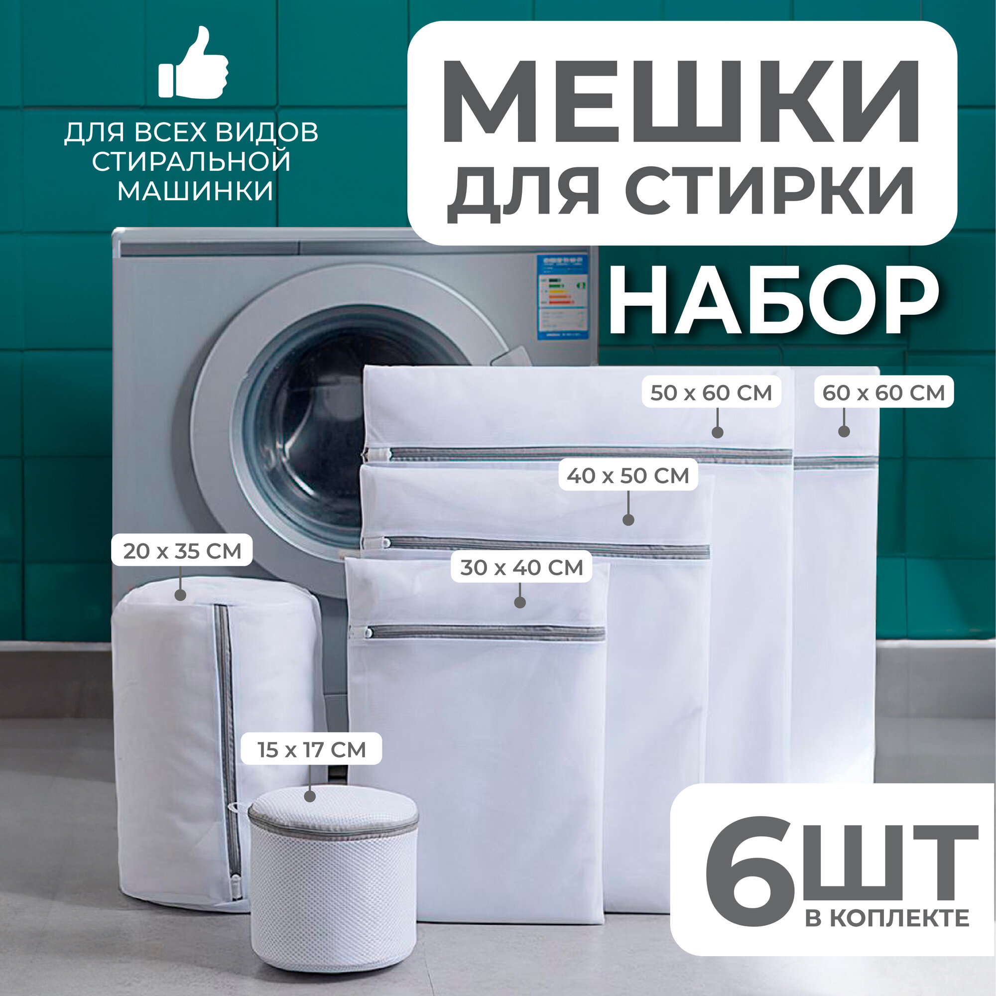 Набор мешков для стирки из 6 шт, белый интересное: