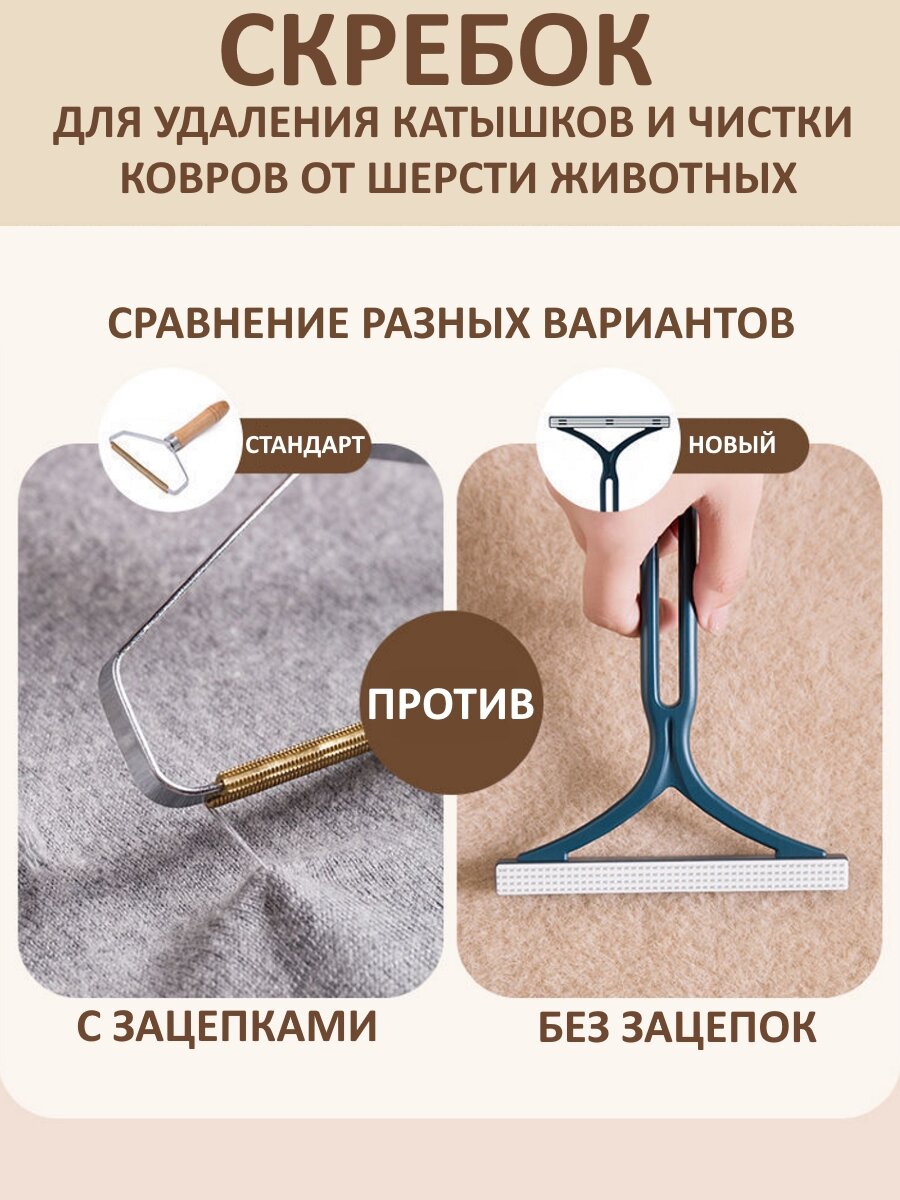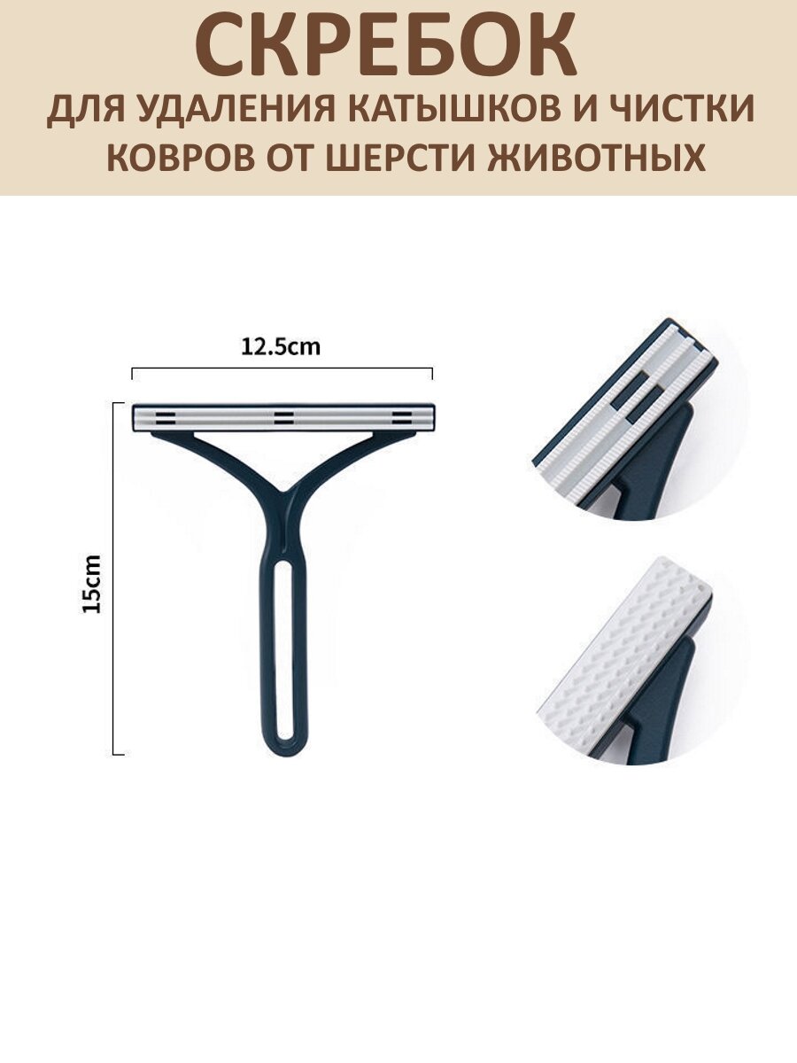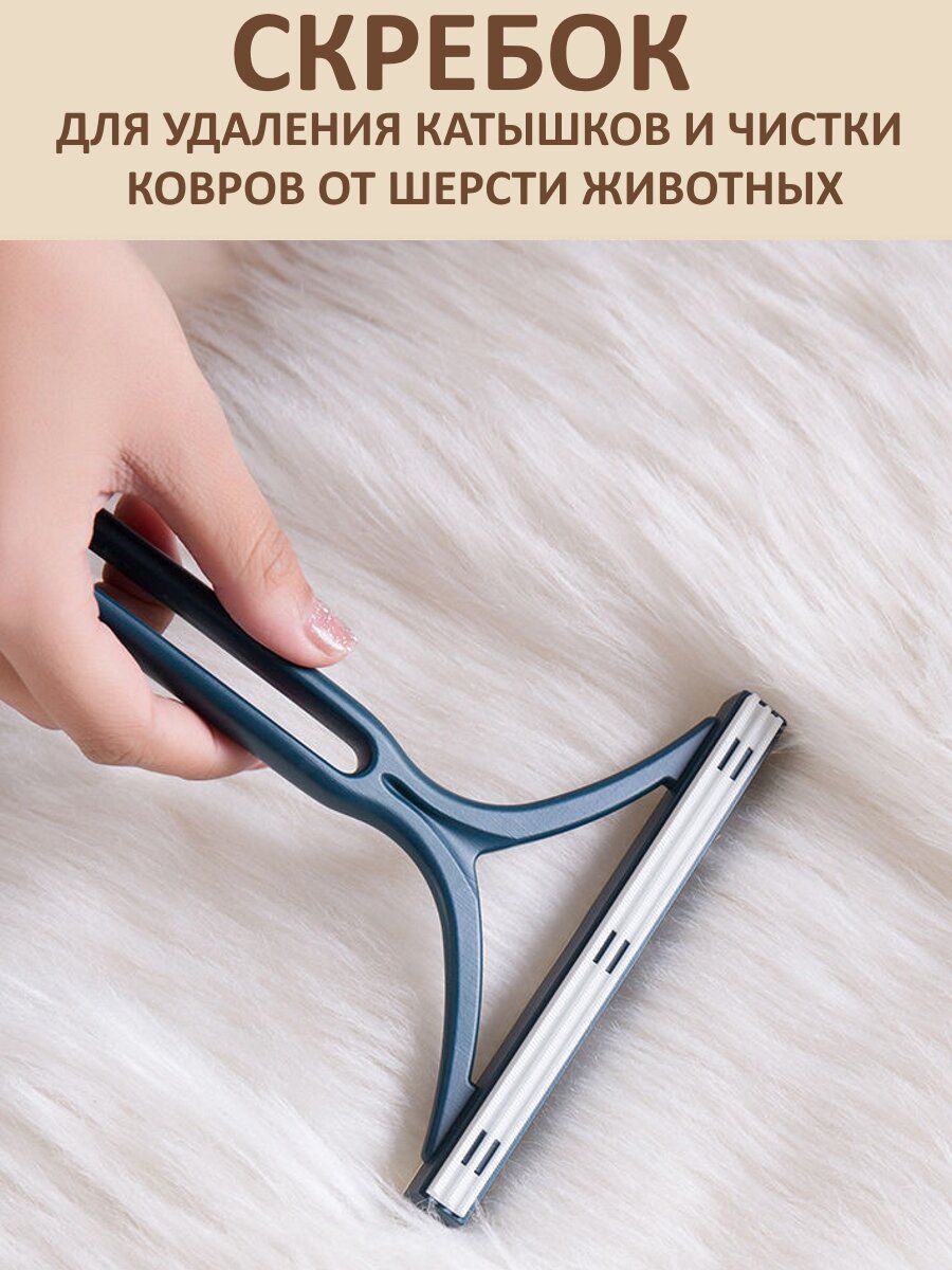 Щетка, скребок для одежды / Скребок для удаления шерсти, ворса, катышков, для чистки мебели / Щетка для удаления шерсти животных (синий) интересное: