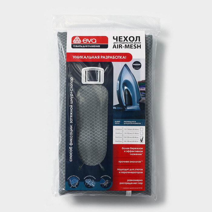 Чехол для гладильной доски термостойкий EVA Air-Mesh антипригарный, 156х52 см, серый