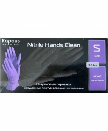 Купить Нитриловые перчатки неопудренные, текстурированные, нестерильные Kapous "Nitrile Hands Clean", фиолетовые, 100 шт., S