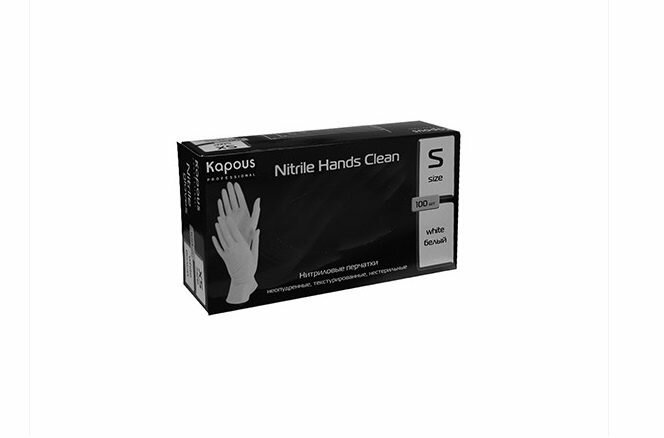 Купить Нитриловые перчатки неопудренные, текстурированные, нестерильные Kapous "Nitrile Hands Clean", белые, 100 шт., S
