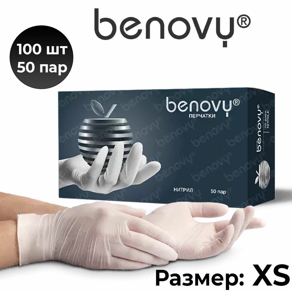 Купить Benovy Перчатки белые нитриловые медицинские 100шт (50 пар) , размер XS
