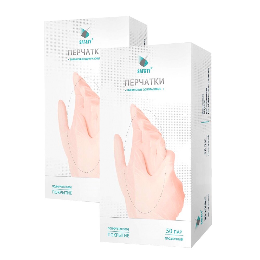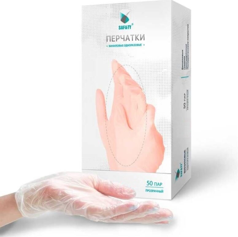 Перчатки виниловые SAF&TY смотровые, 50 пар, размер S, прозрачные