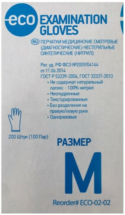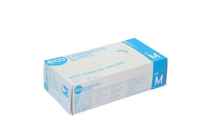Перчатки смотровые нитриловые ECO Examination Gloves, цвет: голубой, размер M, 200 шт. (100 пар) интересное: