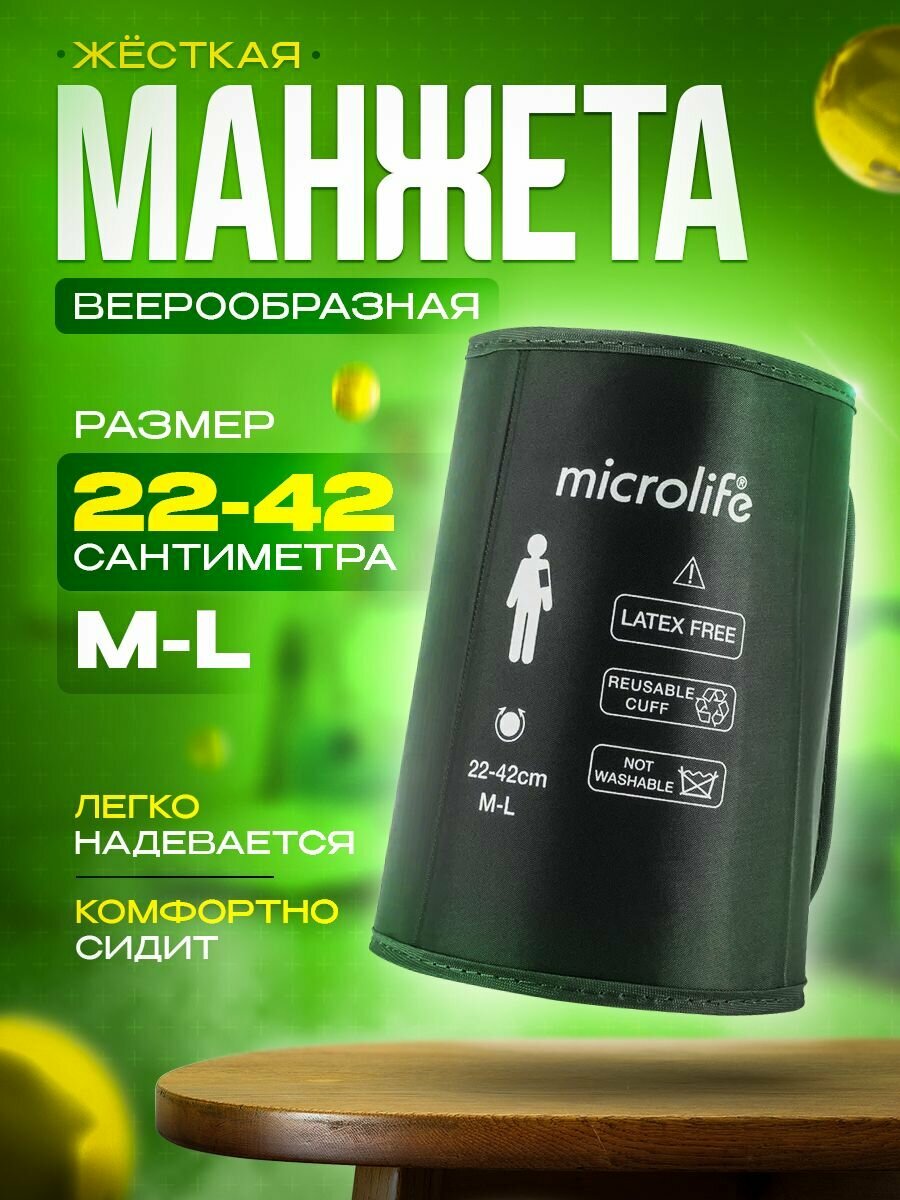 Манжета ML Microlife коническая, жесткая, широкий диапазон на плечо, размер 22-42 см интересное: