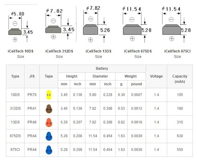 Батарейки iCellTech 675 (PR44) для слуховых аппаратов, упаковка (60 батареек)