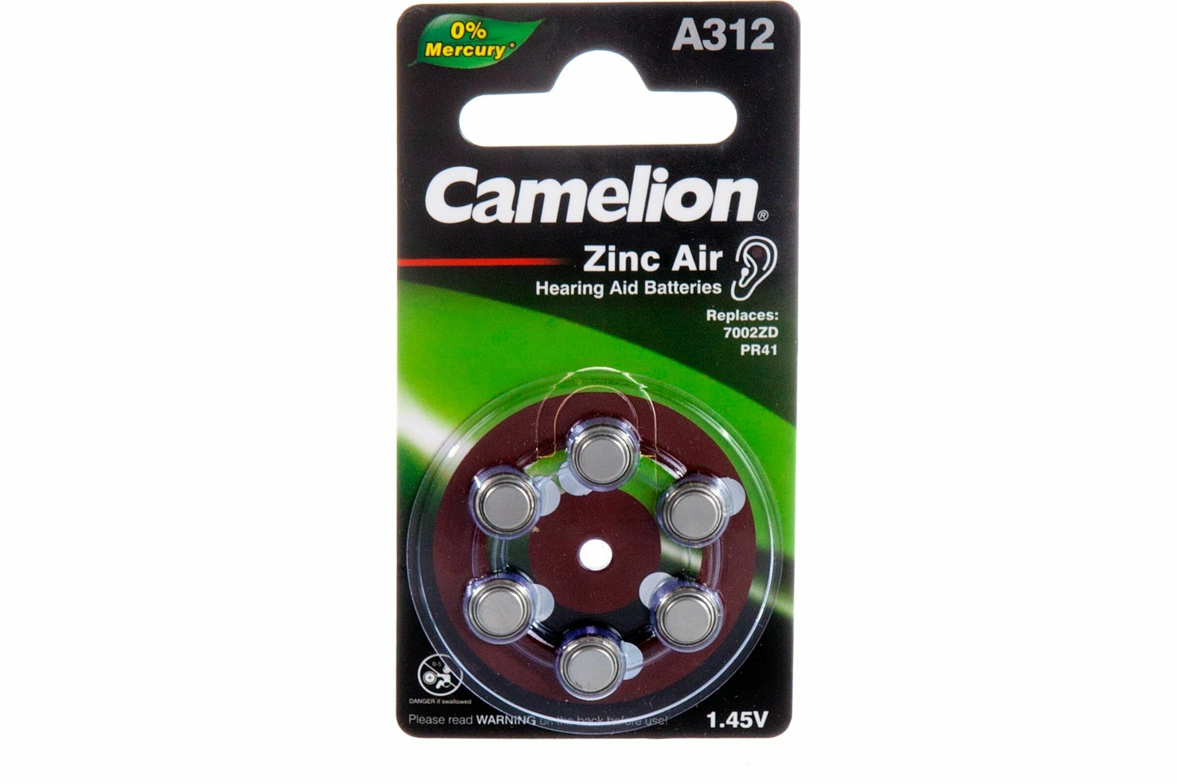 Camelion ZA312 BL-6 Mercury Free (A312-BP6(0%Hg), батарейка для слуховых аппаратов, 1.4 V,170mAh) 6 шт. интересное: