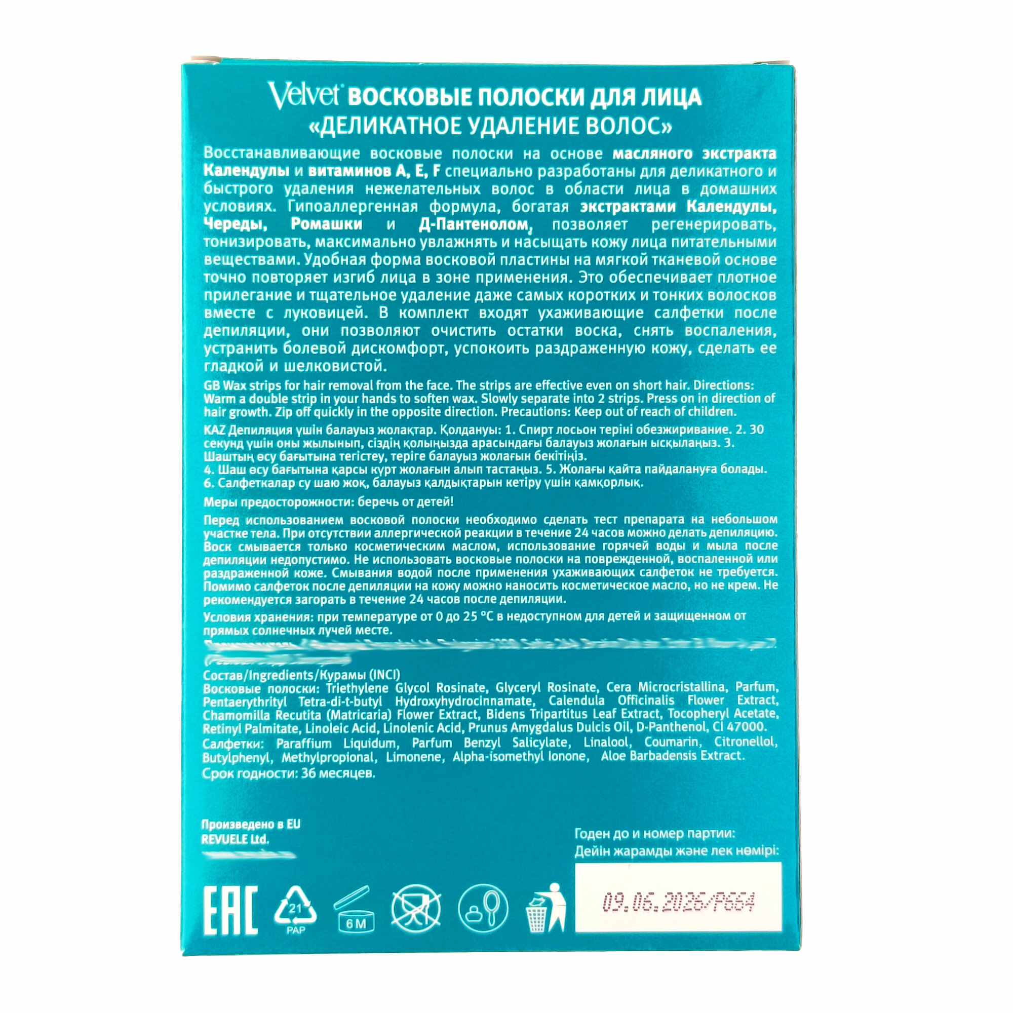 Восковые полоски Velvet "Деликатное удаление волос" 12шт интересное:
