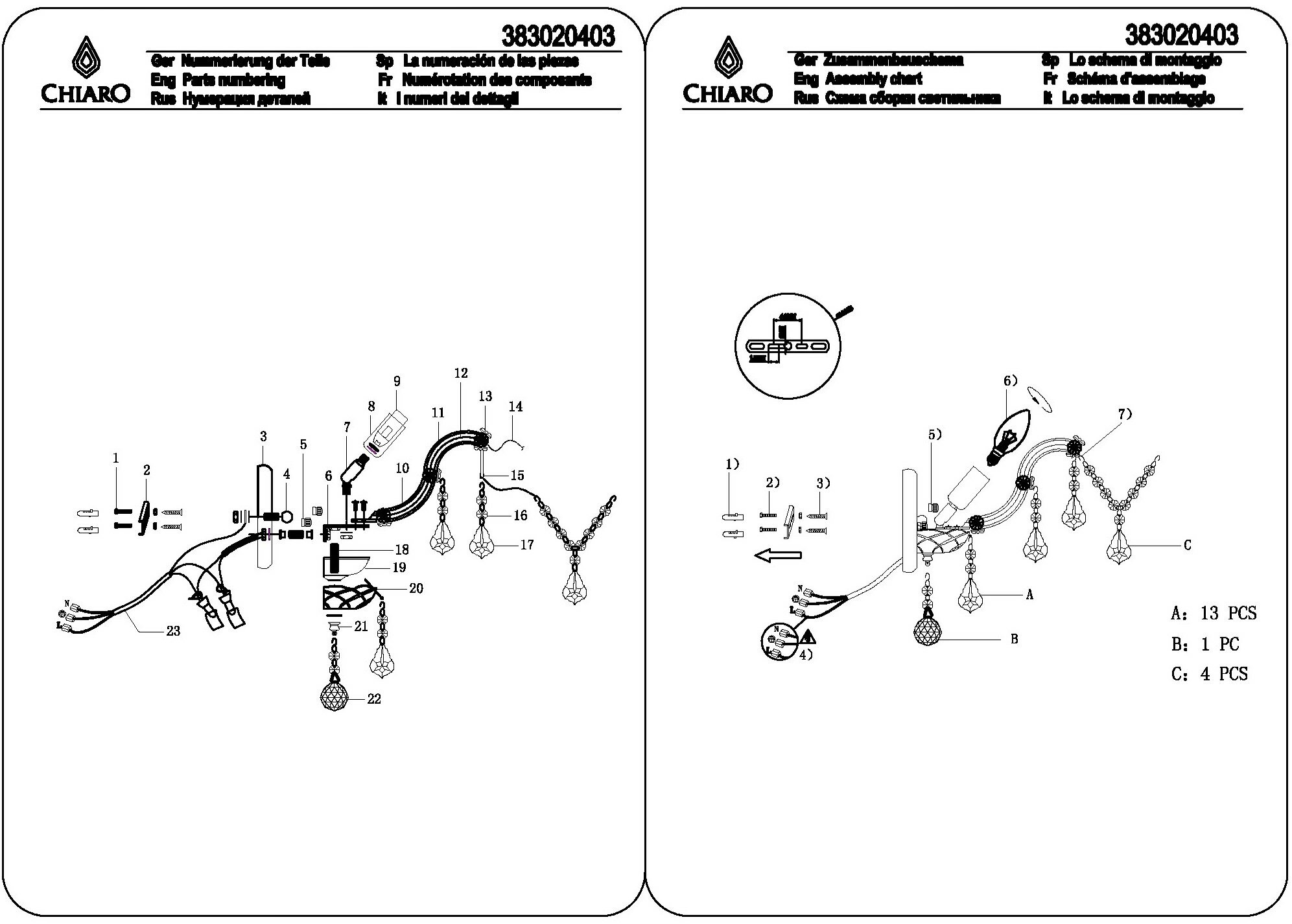 Хрустальный светильник 383020403 Chiaro луиза
