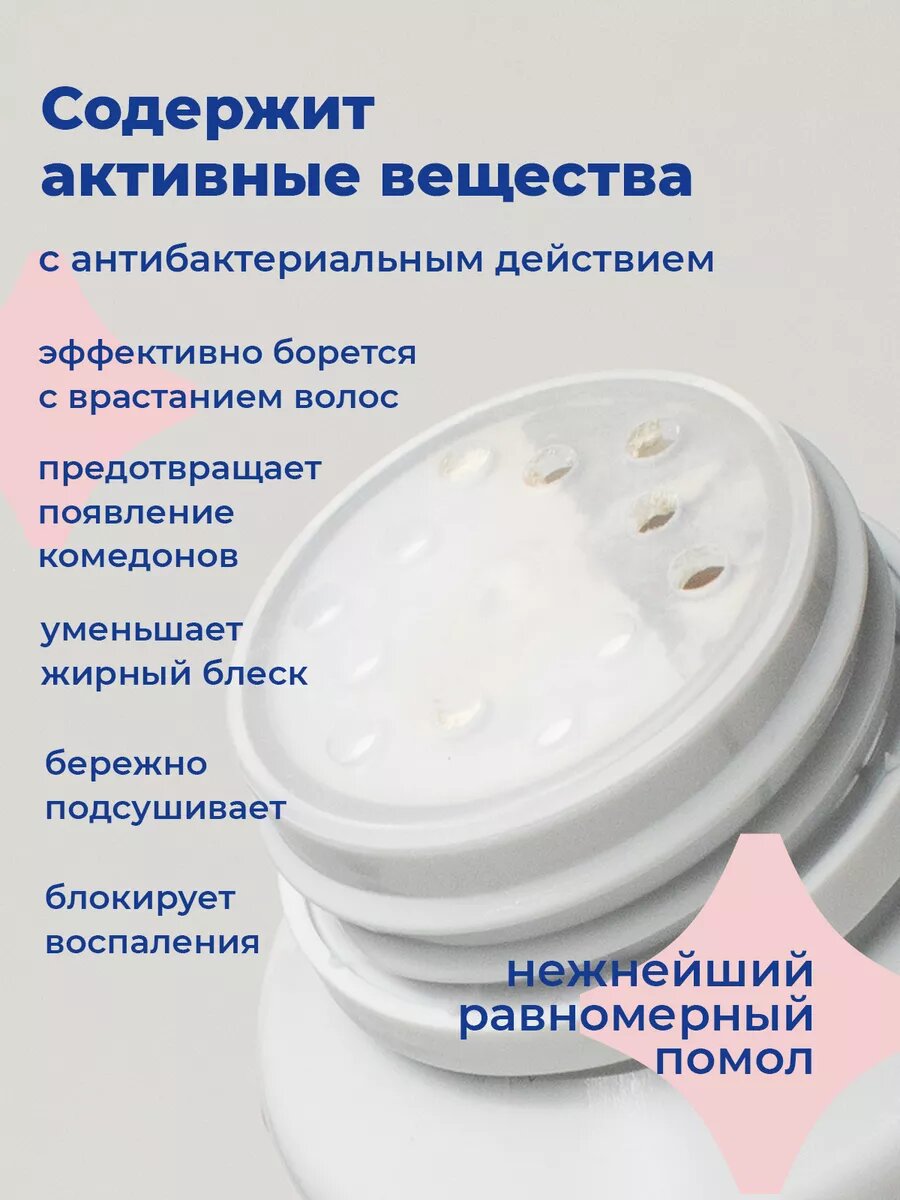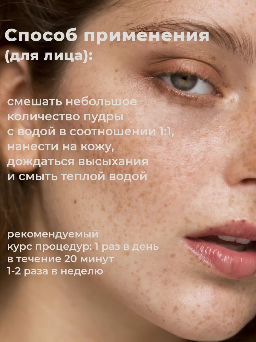 | Способ применения | нанести небольшое количество пудры на очищенную кожу, подождать 15-20 минут, смыть теплой водой или очистить кожу при помощи салфетки. Рекомендуемый курс процедур при появлении комедонов и гнойничков: 1 раз в день в течение 20 минут в течение 5 дней. |