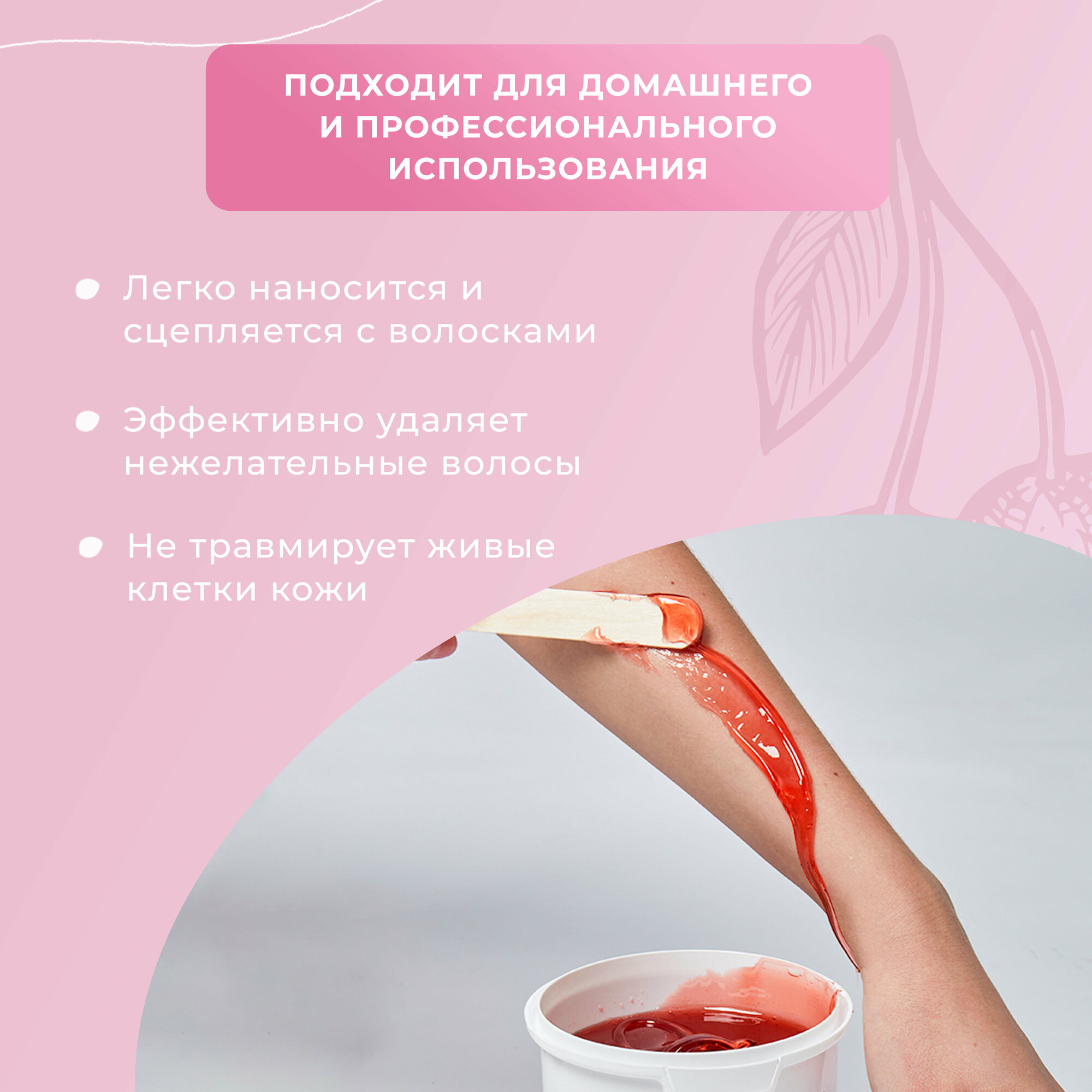 | Область применения | бикини / грудь / лицо / ноги / подмышки / руки / спина / универсальное средство |