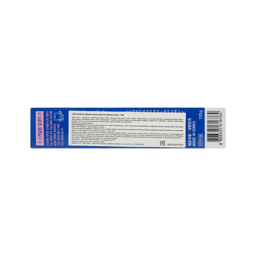 LION SYSTEMA TARTAR 120g Зубная паста для профилактики против образования зубного камня