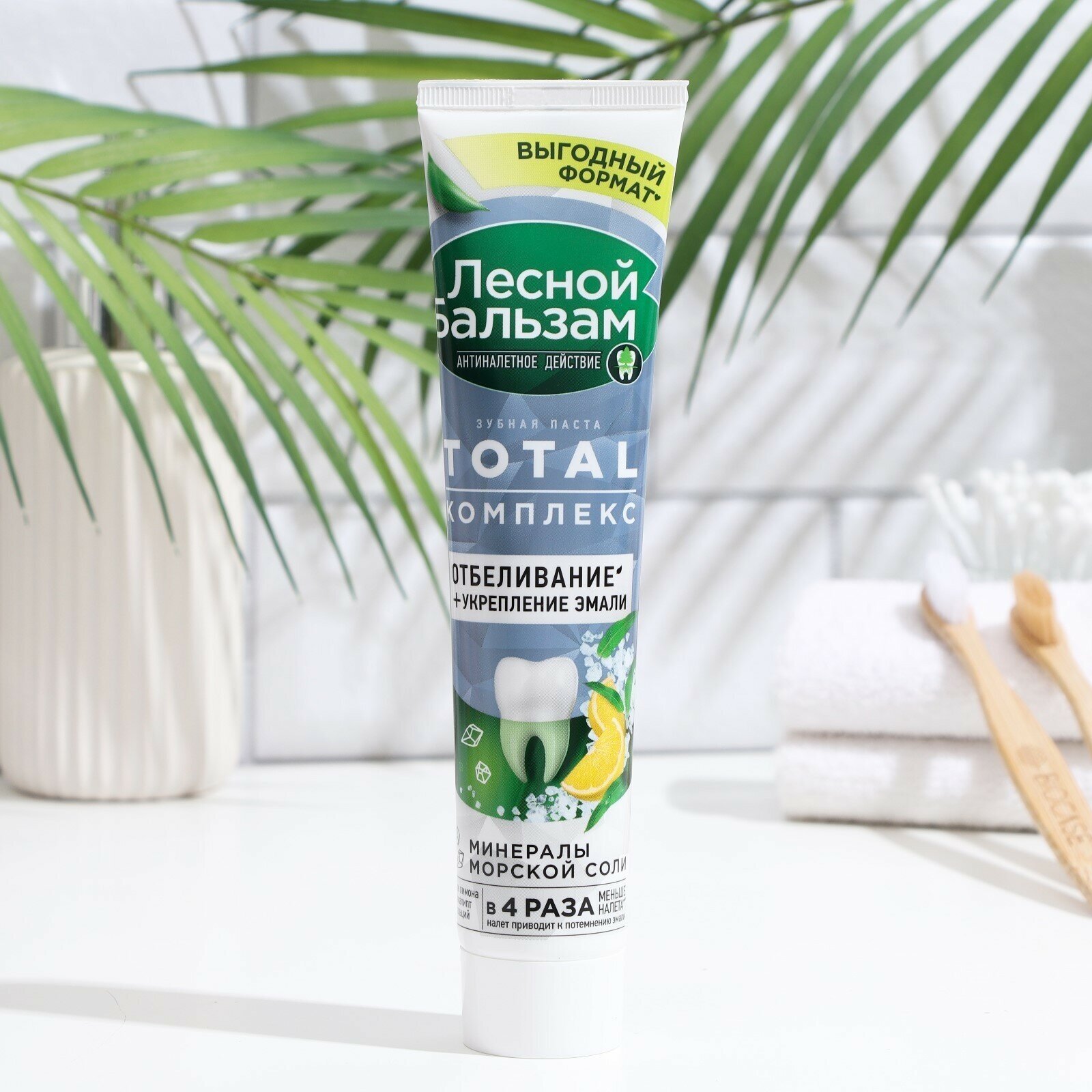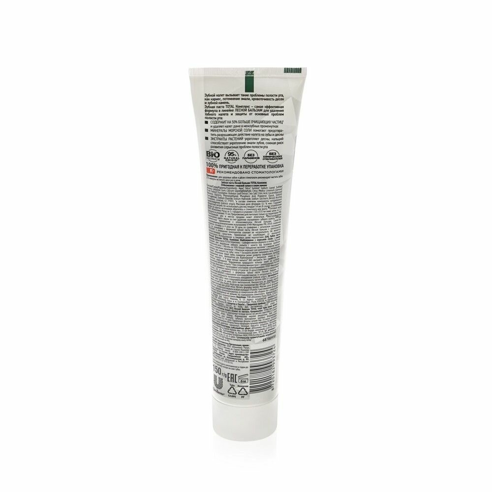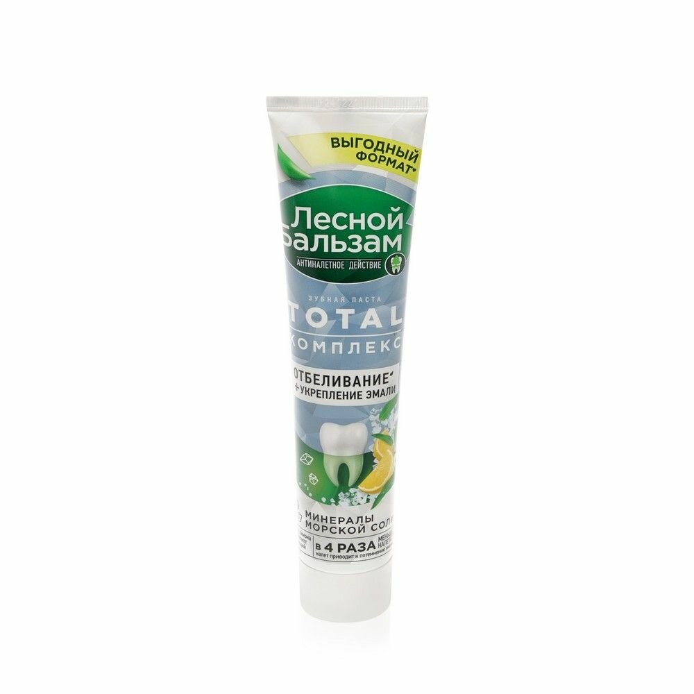 Зубная паста отбеливающая Лесной Бальзам Total Комплекс отбеливание, с морской солью и лимоном, 150 гр
