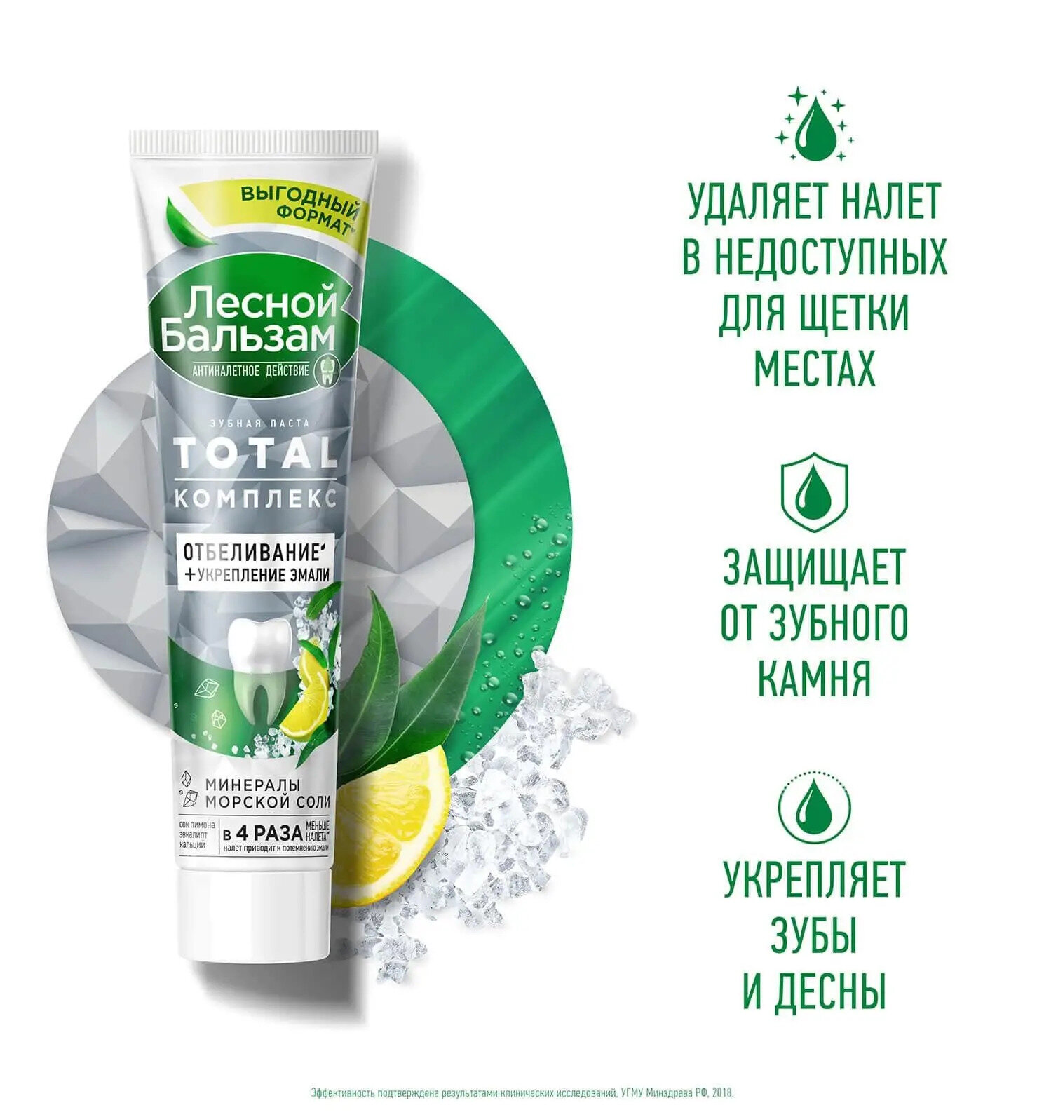 Лесной бальзам Паста зубная Total Комплекс Отбеливание с морской солью и соком лимона, 150 г, 20 шт.