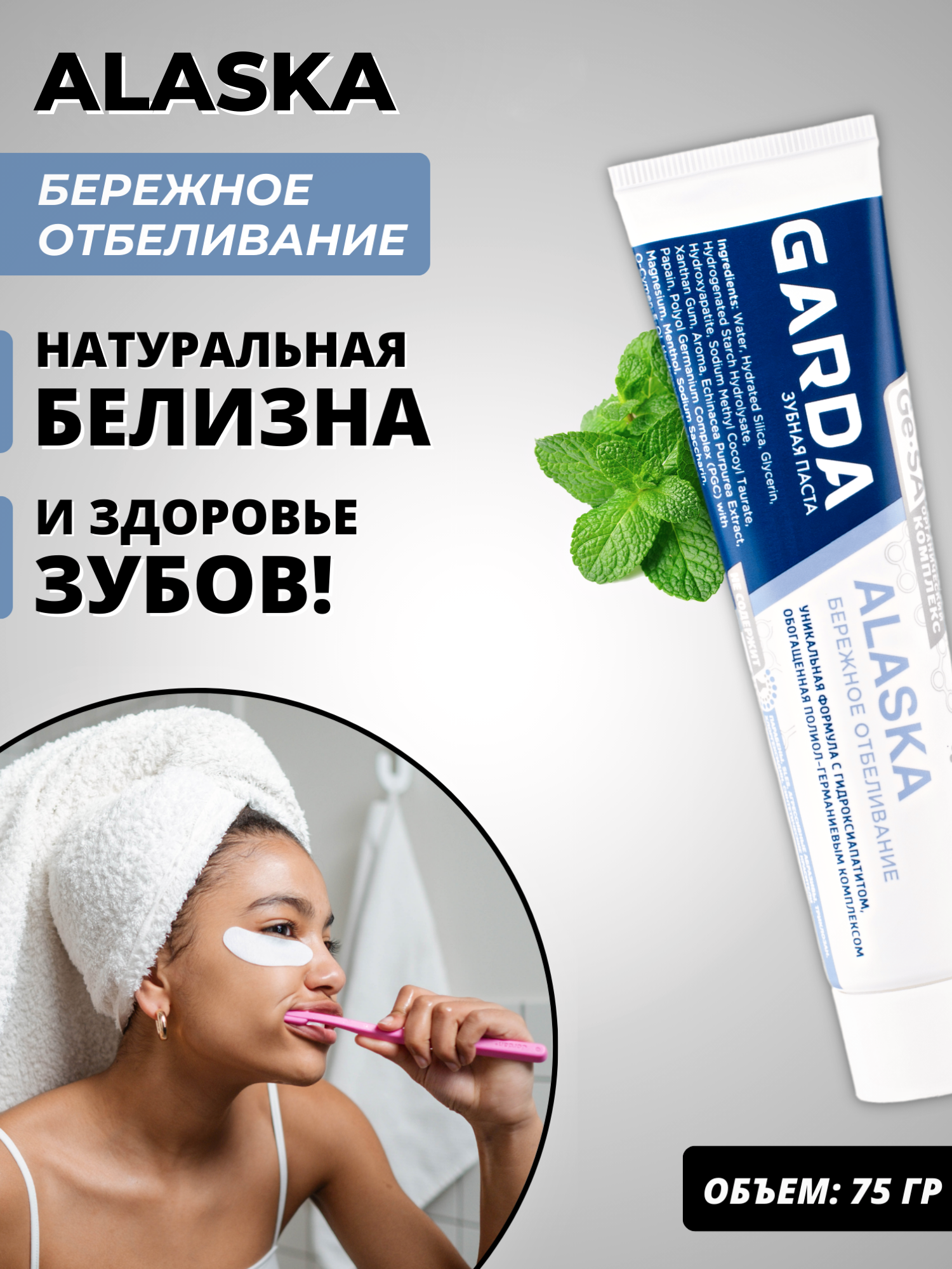 Зубная паста "ALASKA бережное отбеливание",75г. интересное: