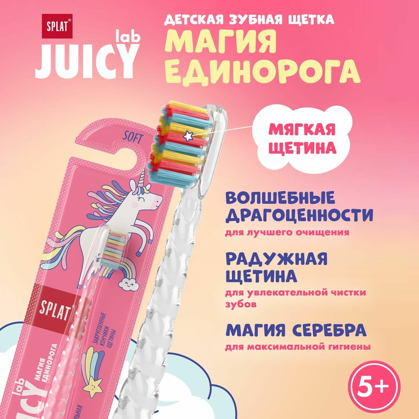 Splat Junior зубная щетка Juicy Lab Магия единорога 5+ жемчужная