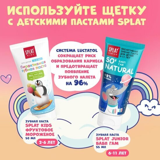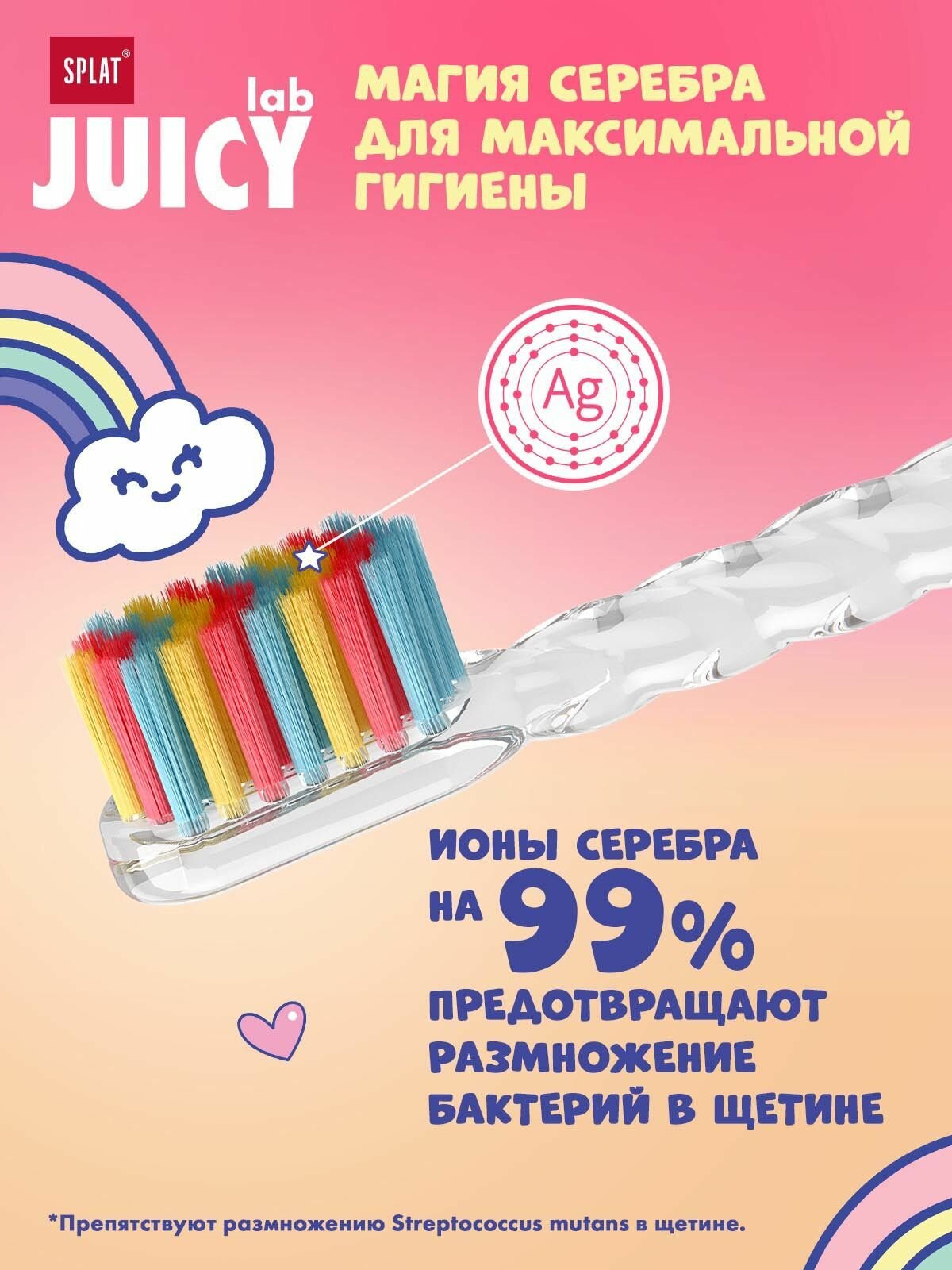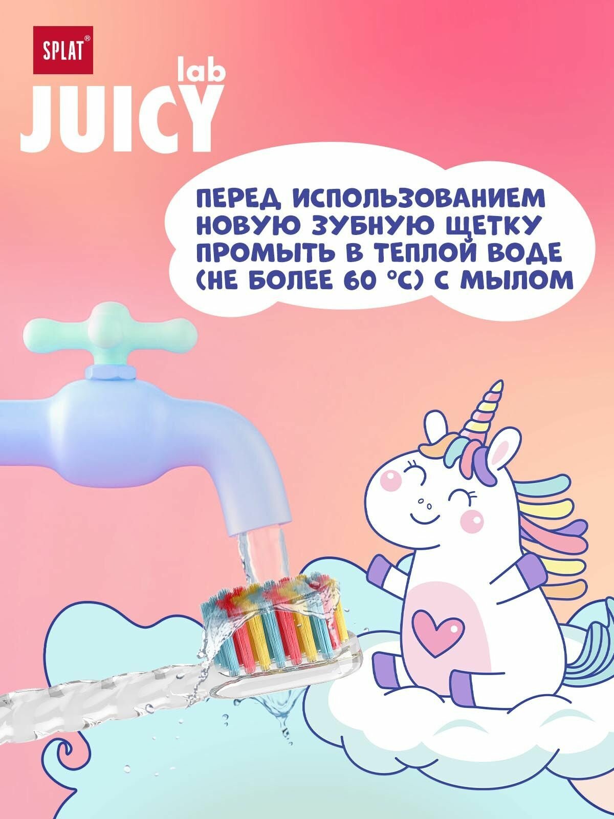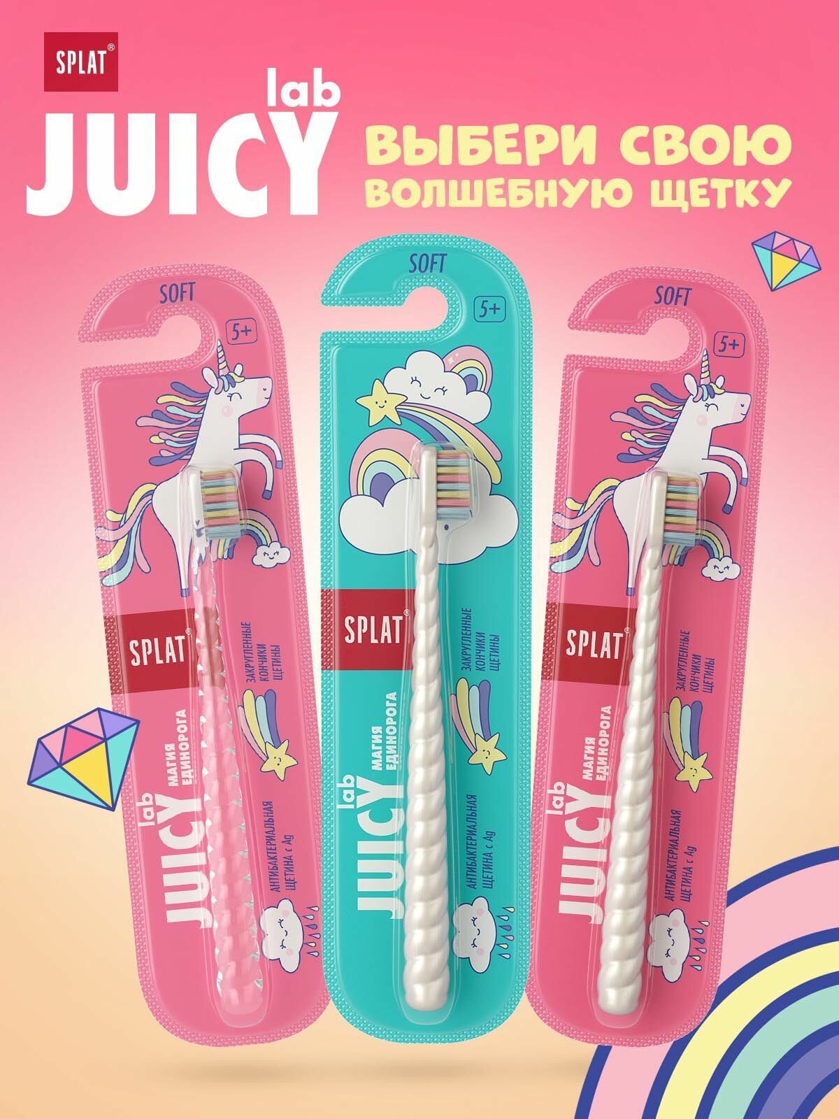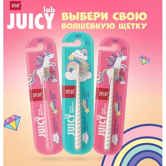 Детская зубная щетка серии JUICY LAB «SPLAT UniMagic / Магия единорога» с ионами серебра. в ассортименте, (2 шт)