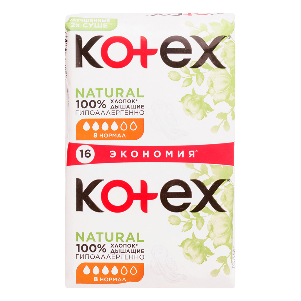 Прокладки женские гигиенические Kotex Natural Normal, 16 шт
