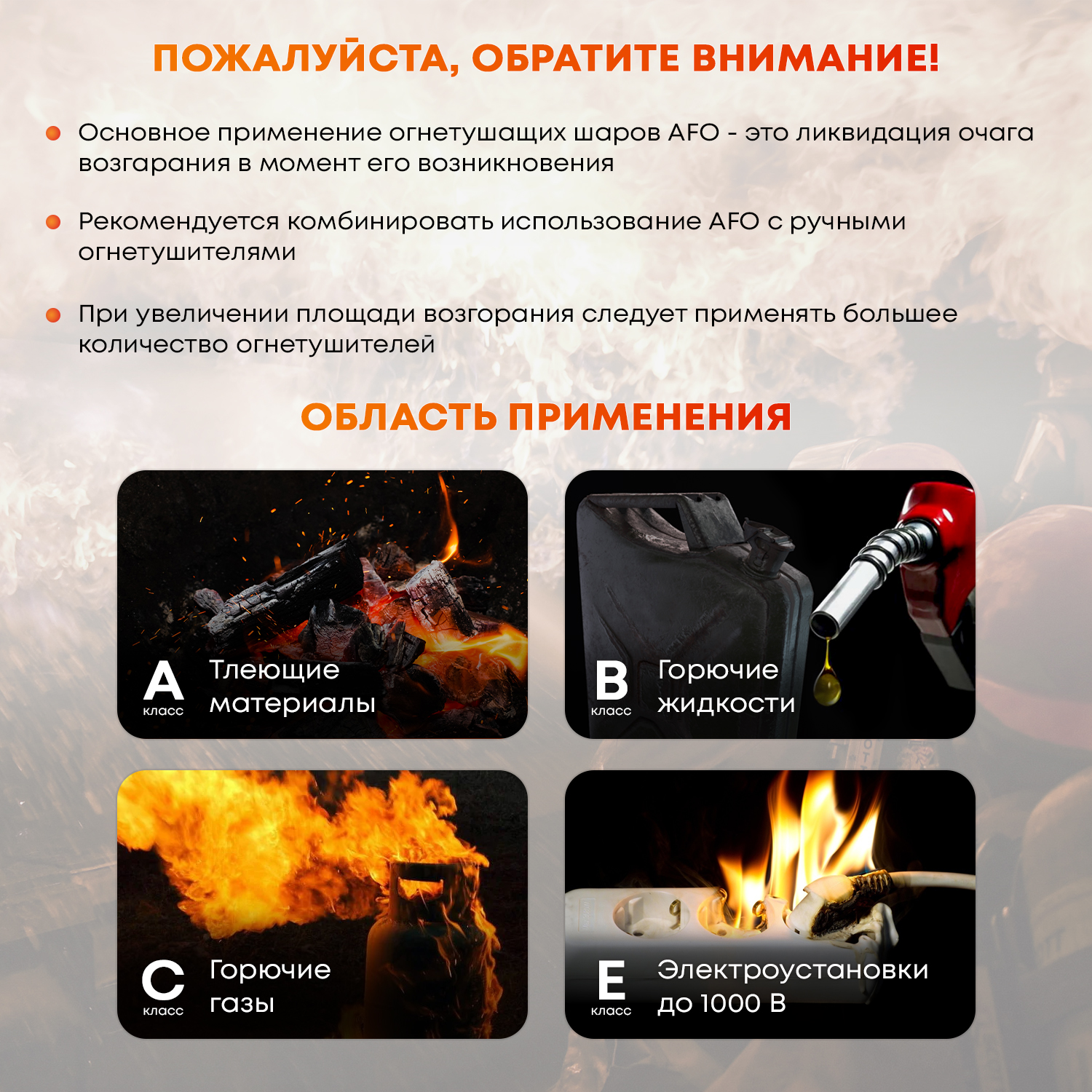 | Класс пожара | A / B / C / E |