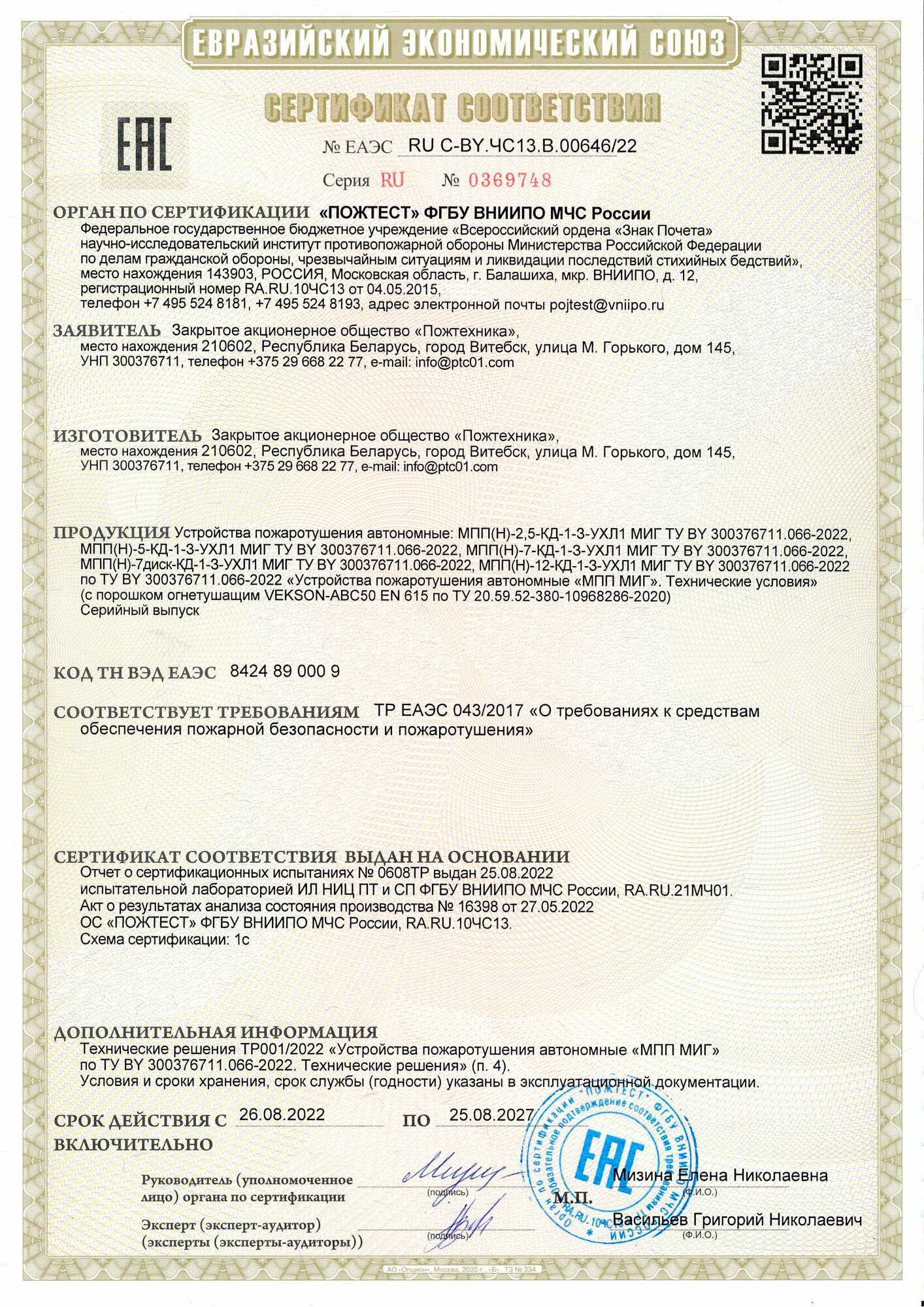 Самосрабатывающий порошковый огнетушитель МПП 5 МИГ интересное: