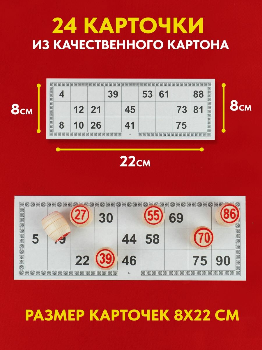 Русское лото, игра настольная "Время игры", 24 карточки, карточка 17.2 х 7.5 см