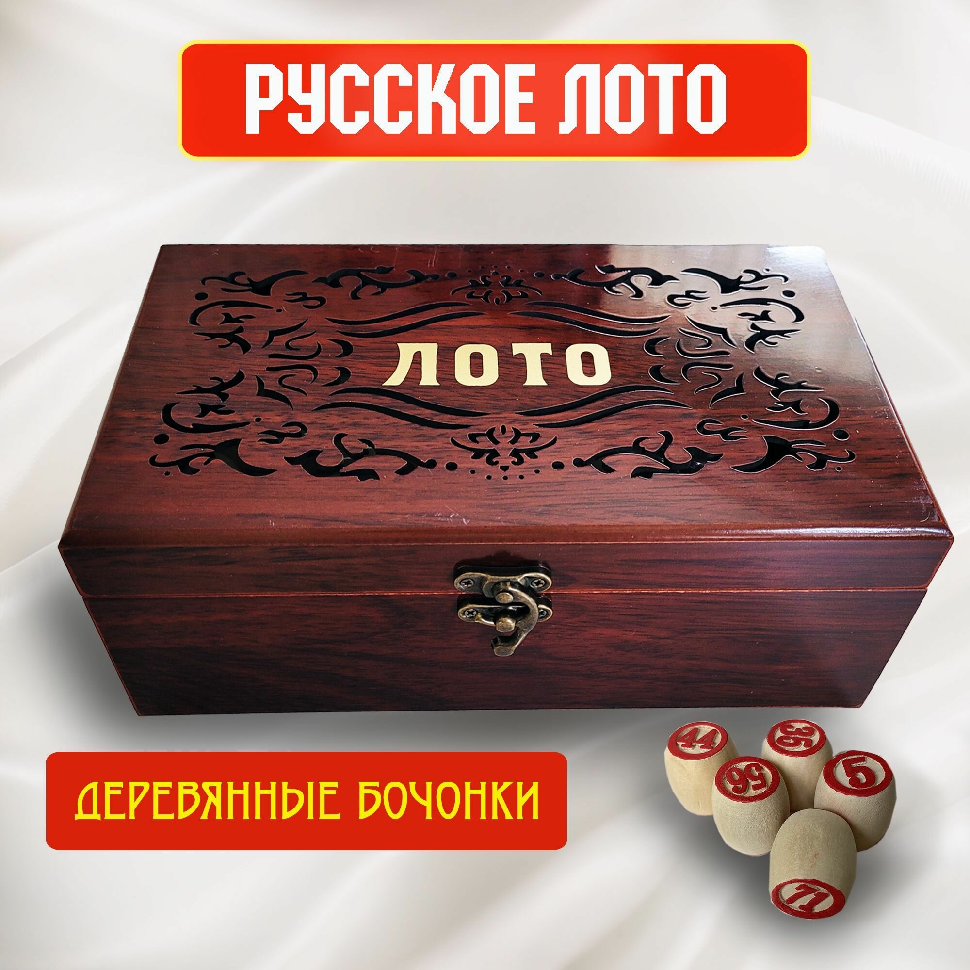 Русское лото в стильной сувенирной шкатулке под красное дерево с резной крышкой