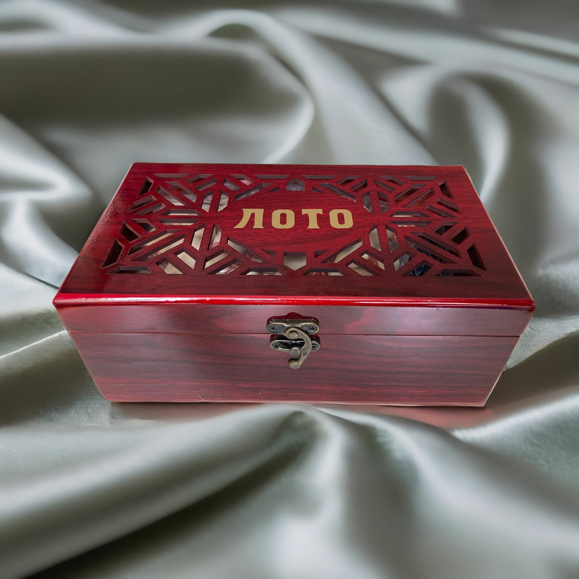 Купить Русское лото в стильной сувенирной шкатулке под красное дерево с резной крышкой