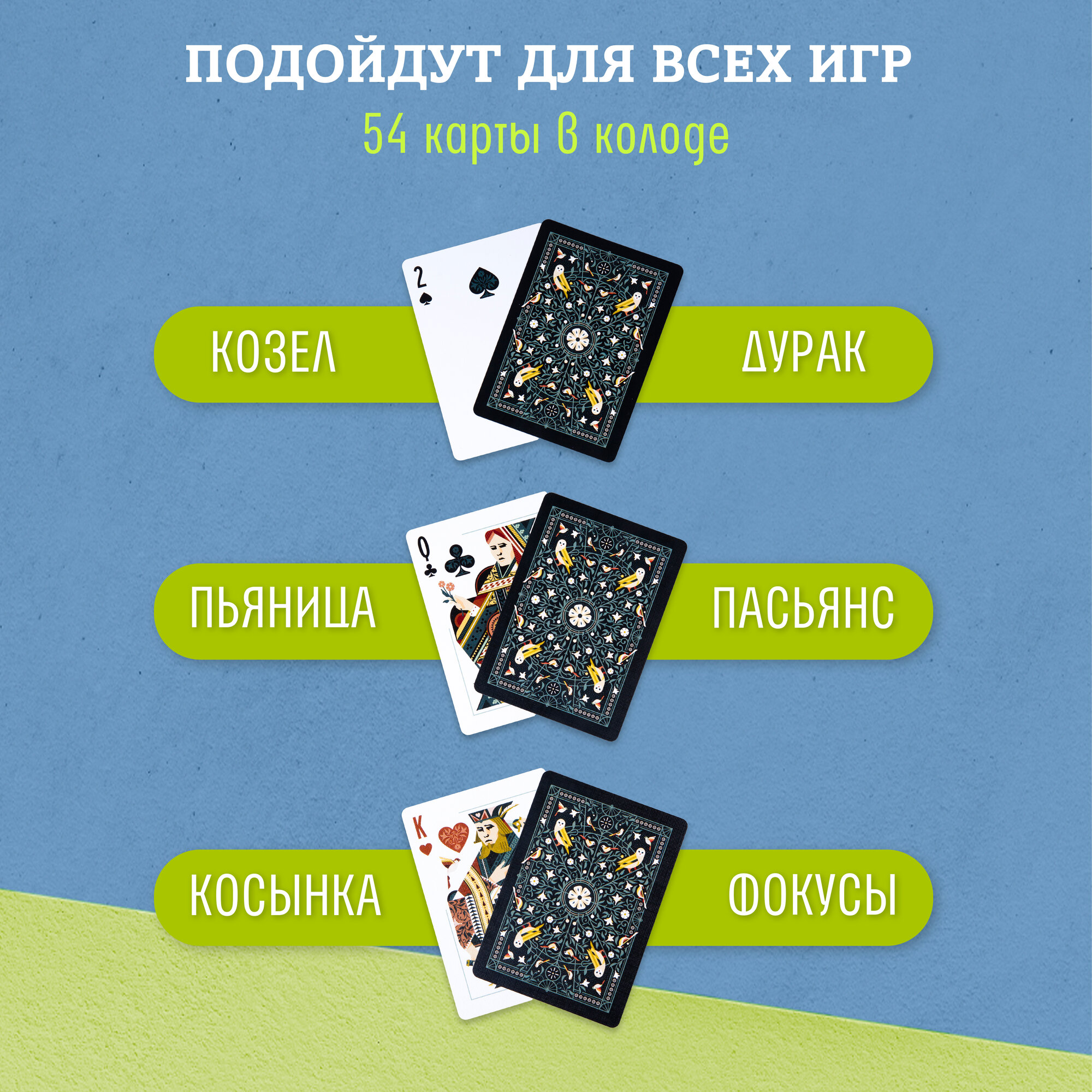 | Дополнительная информация | в колоде 54 карты (+2 информационные); размер карт: 88х63 мм (poker size); индекс карт: стандартный; вес: 100 г |