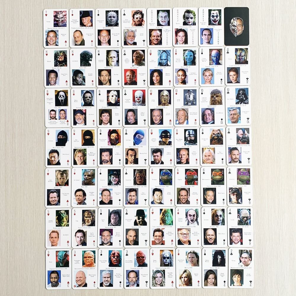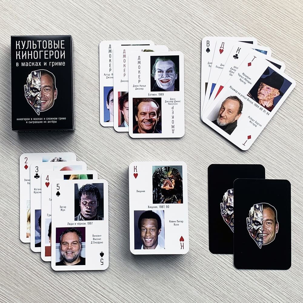 Игральные карты "Культовые киногерои в масках и гриме". Герои любимых фильмов - подарок актёру и киноману интересное: