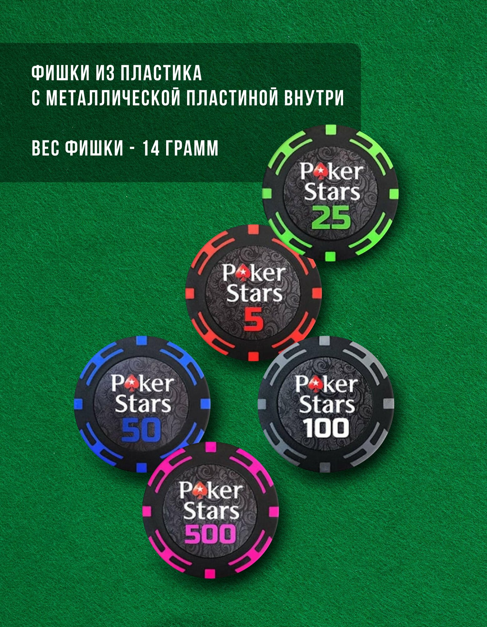 | Вес фишки | 14 г |