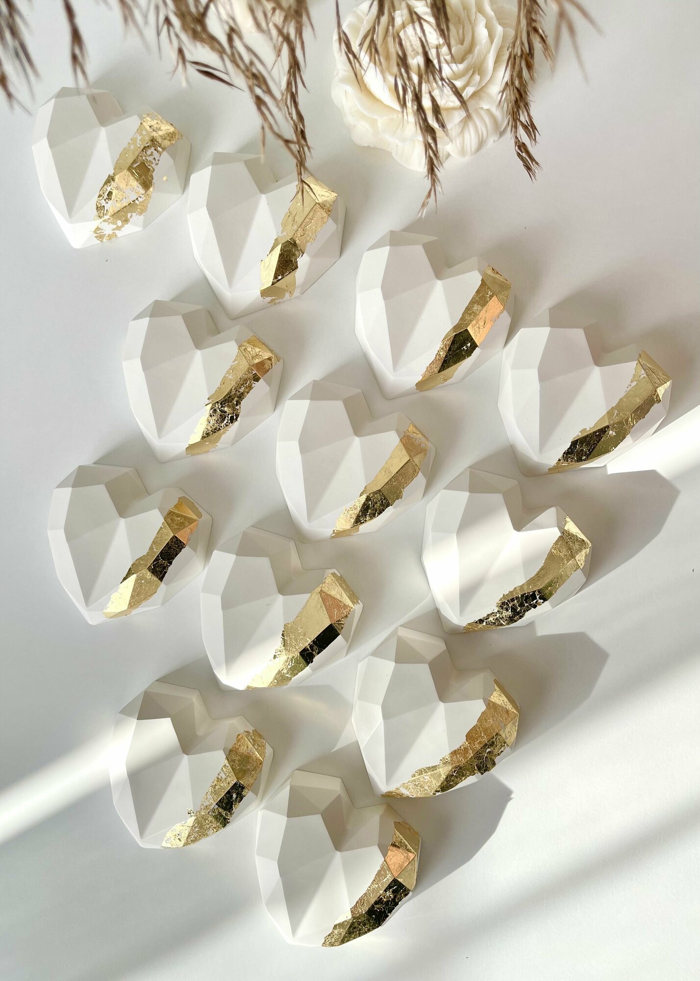 Свадебные подарки комплименты для гостей / Свадебные бонбоньерки белые с золотым 10 штук