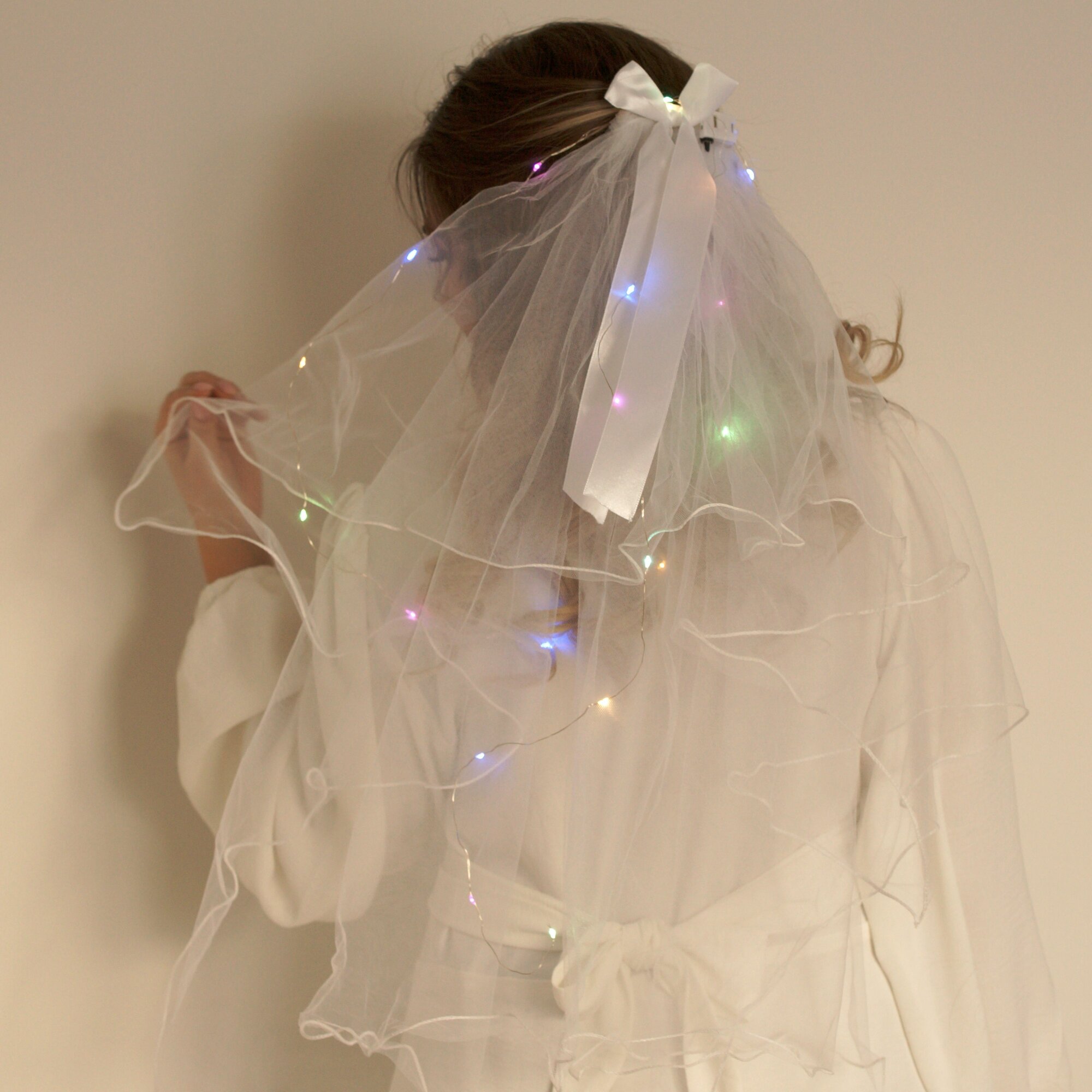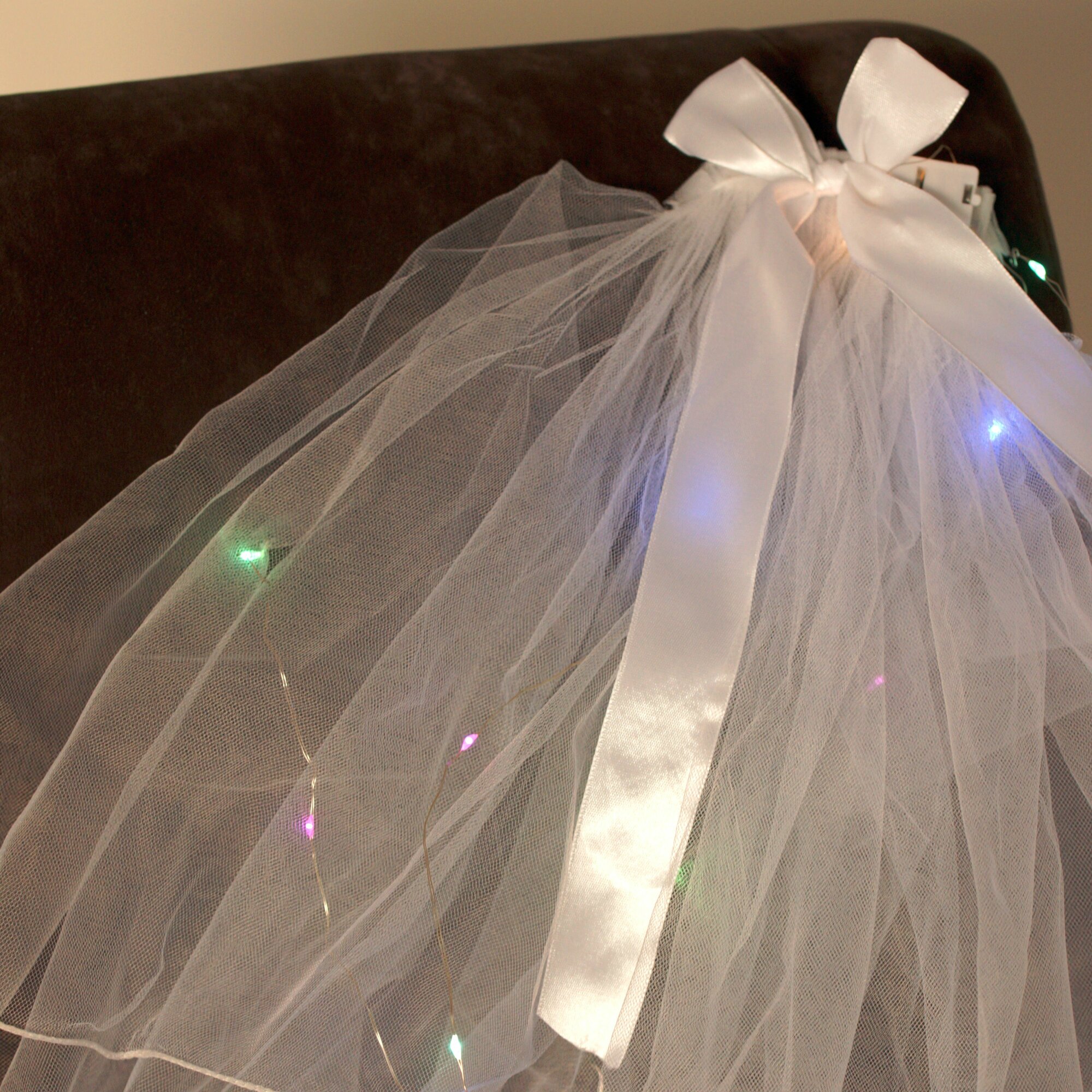 Фата для девичника белая светящаяся с разноцветной подсветкой интересное: