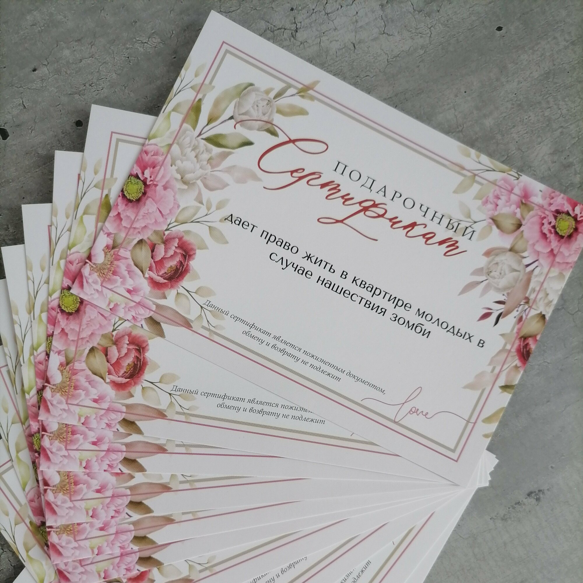 Свадебные шуточные сертификаты для конкурсов , 10,5х14,8 см. 10 шт